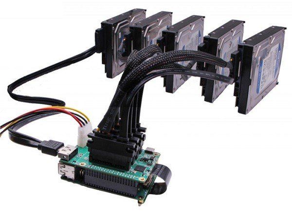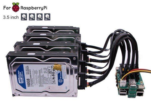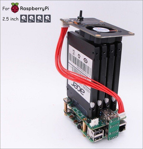A case for holding the Raspberry Pi 4 and four 2.5-inch SATA hard disks.
