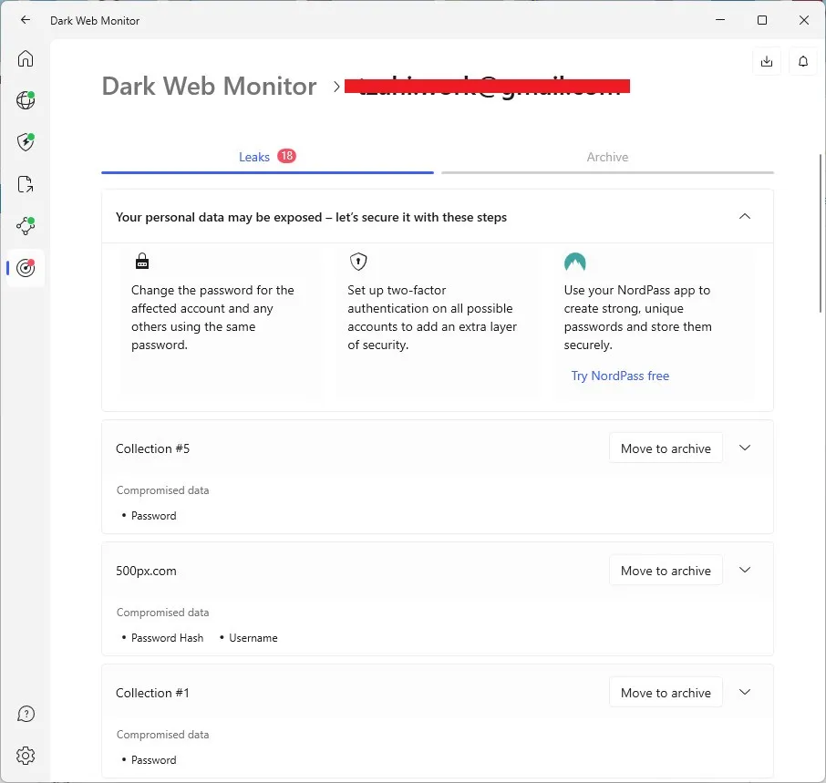 This useful and intuitive feature is designed to conduct a comprehensive scan of the dark web, efficiently determining whether your email has been compromised or if your personal information has been exposed. While you don’t have the ability to delete the data, it serves as a valuable warning tool, alerting you when it’s crucial to enhance your email security, such as enabling two-factor authentication or changing your password.