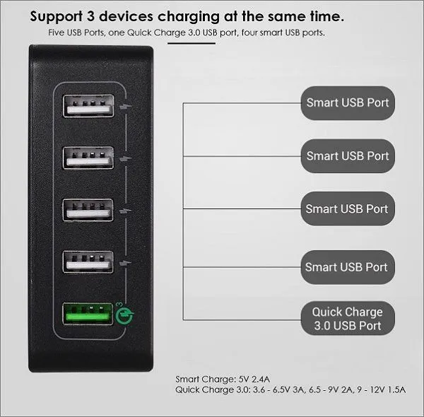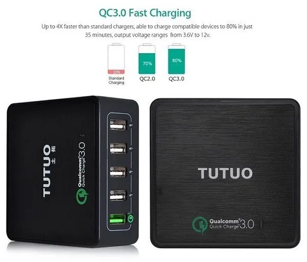 Fast USB Wall Chargers are becoming a must-have mobile accessory to buy for home and outdoor usage. with few members in a family owning smartphones and few of them possibly using 1-2 phones on a daily basis, a multi-port USB wall charger comes on hand instead of buying 5 separated wall chargers. The TUTUO QC 025P is five ports Certified Qualcomm USB Charger supports the latest v2.0 / 3.0 quick charging technology standards.