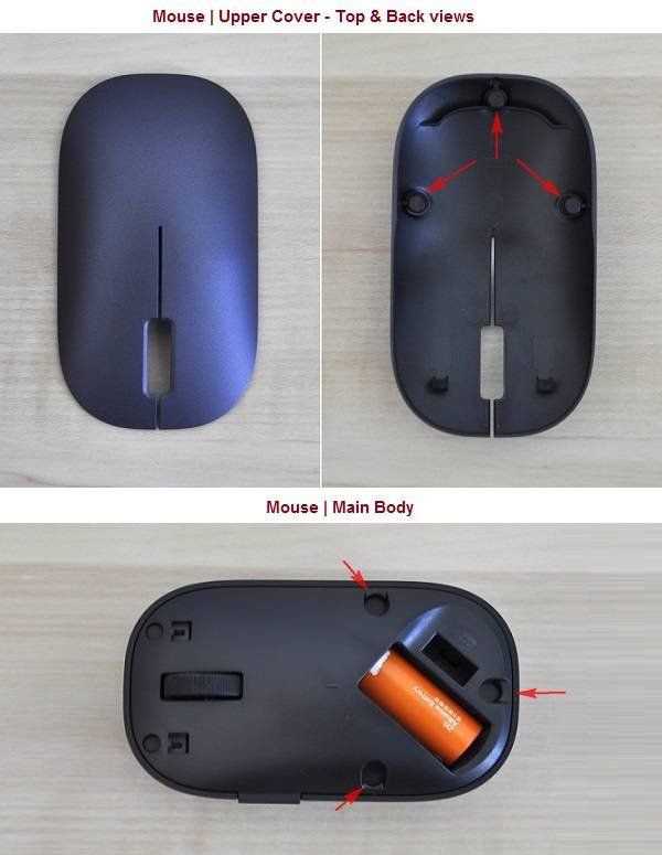 The mouse’s exterior design is agronomic and very comfortable to operate. The mouse is composed of two separate parts. The upper cover and the main body of the mouse. The Upper surface is attached to the mouse’s main body with three magnets embedded inside the mouse.
