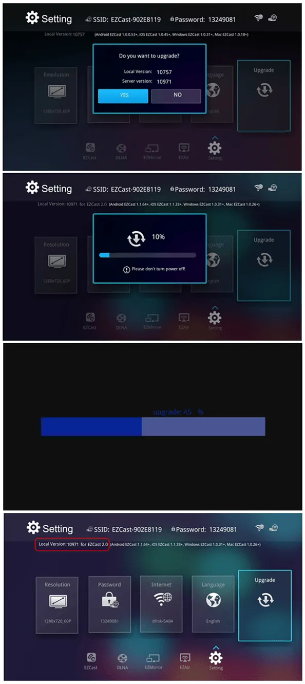 - Client Software: EZCAST Android App Ver. 1.1.108