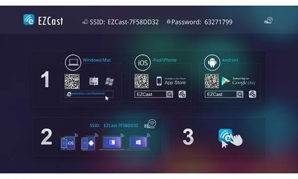 - Remote Control: Android/Windows/IOS/MAC software: EZCast app