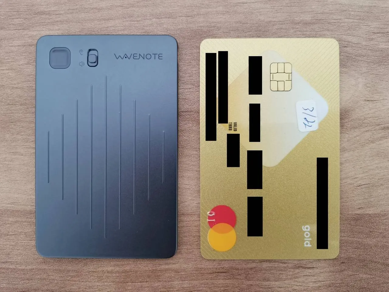 The WaveNote fits conveniently within a wallet.