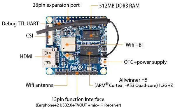 - SoC – Allwinner H5 quad-core Cortex A53 processor