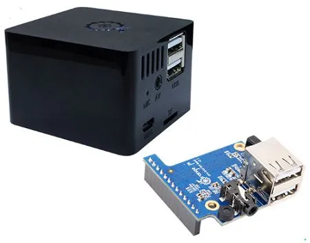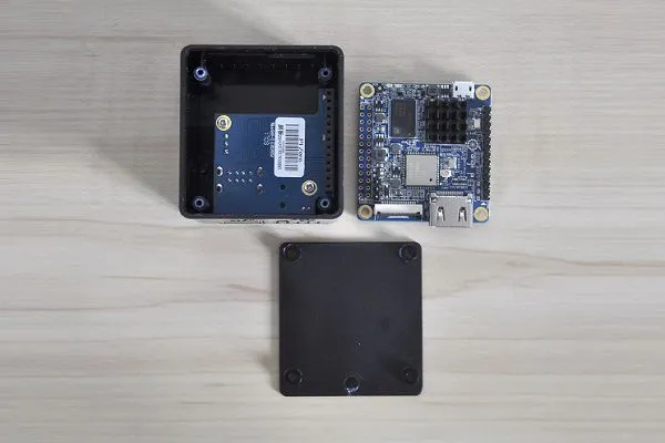 Important to mention that the Orange Pi Zero Plus2 H5 isn’t included in the Kit, therefore you need to buy one separately or alternatively pick a suitable kit available in the Orange Pi StoreU.FL antenna connector and external antenna. That said, the package contains a compact plastic cube-shaped case, available in white/black colors, and an expansion add-on board that fits inside the case that connects directly to the zero plus2 13 pin header, and provides two USB 2.0 Hosts, IR Sensor, Onboard microphone and Analog composite video port.