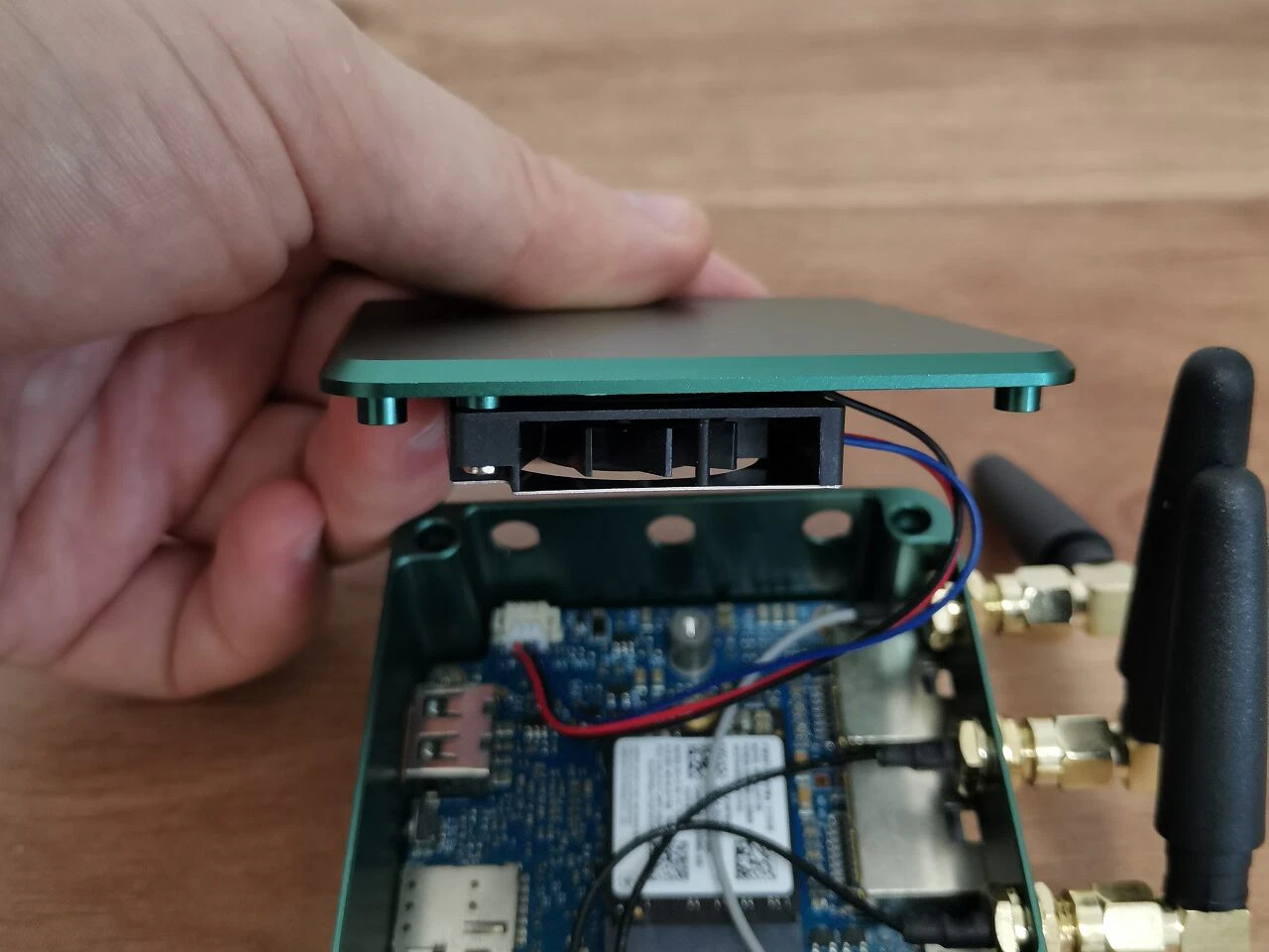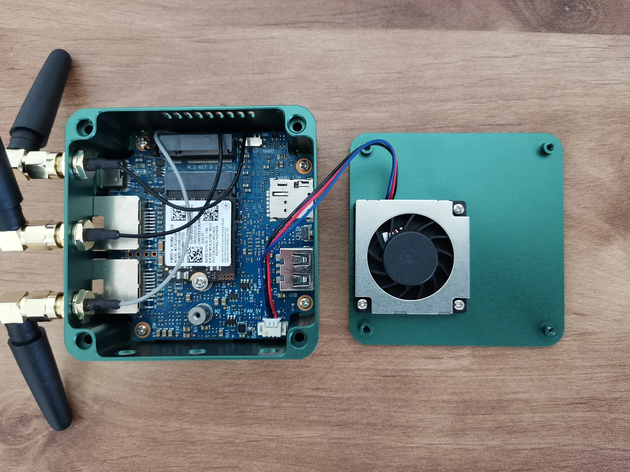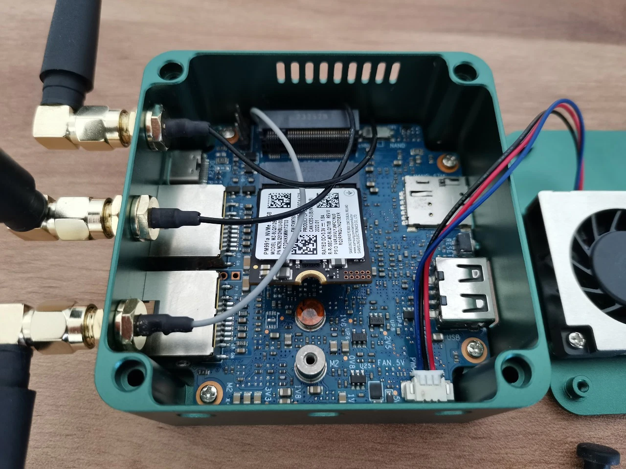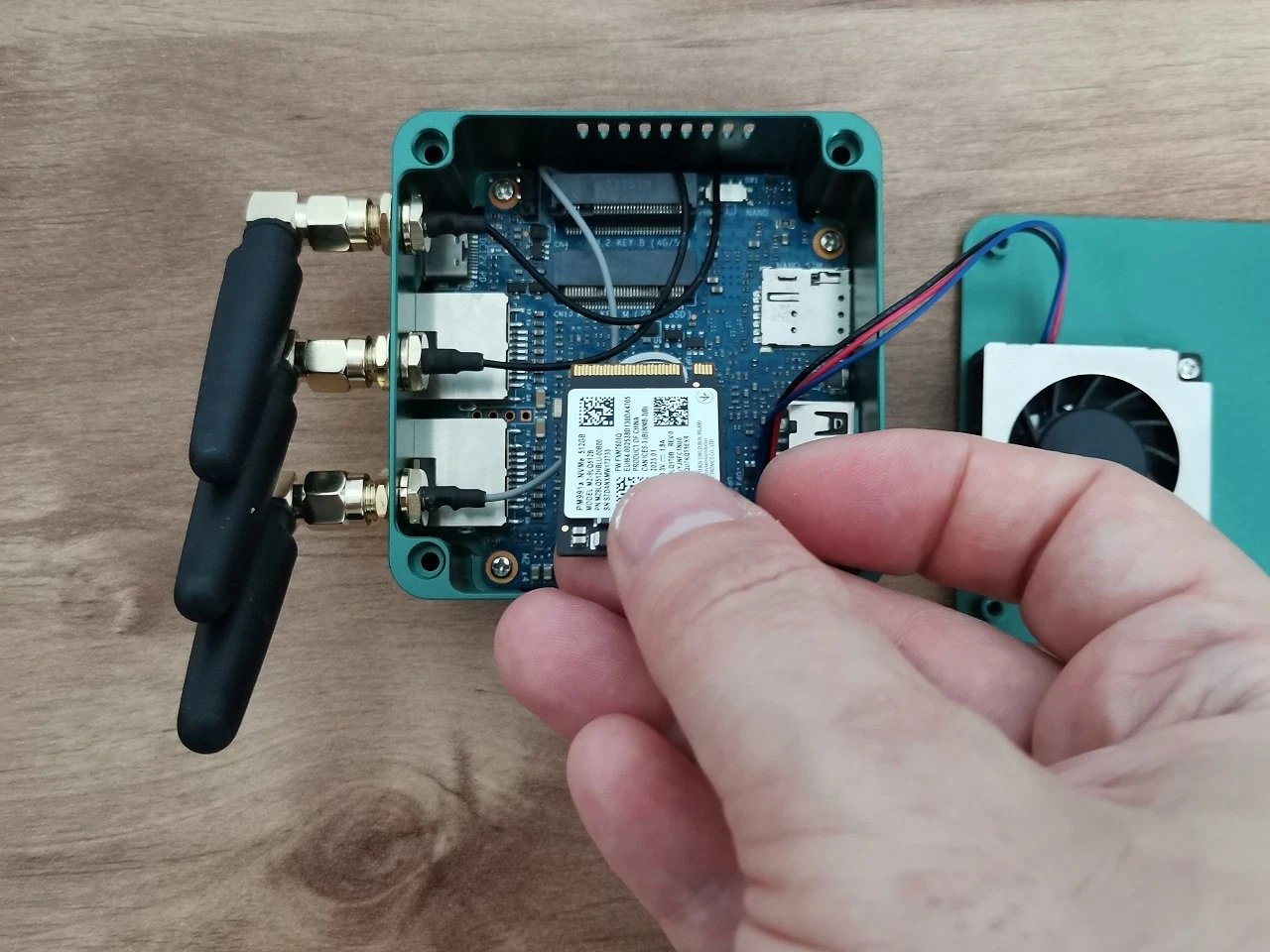 This is where things start to get trickier. The board comes with two M.2 interfaces. One is KEY B designed for 4/5G Module and the second is KEY M which is designed for storage mainly. The KEY B socket is slightly higher. The limited size of the board dimensions poses certain constraints on this design concept, which could potentially lead to heat issues, particularly when both sockets are being used simultaneously. The most practical solution we can consider is to install a heat isolation pad. This will act as a buffer between the two boards and effectively prevent them from overheating each other.