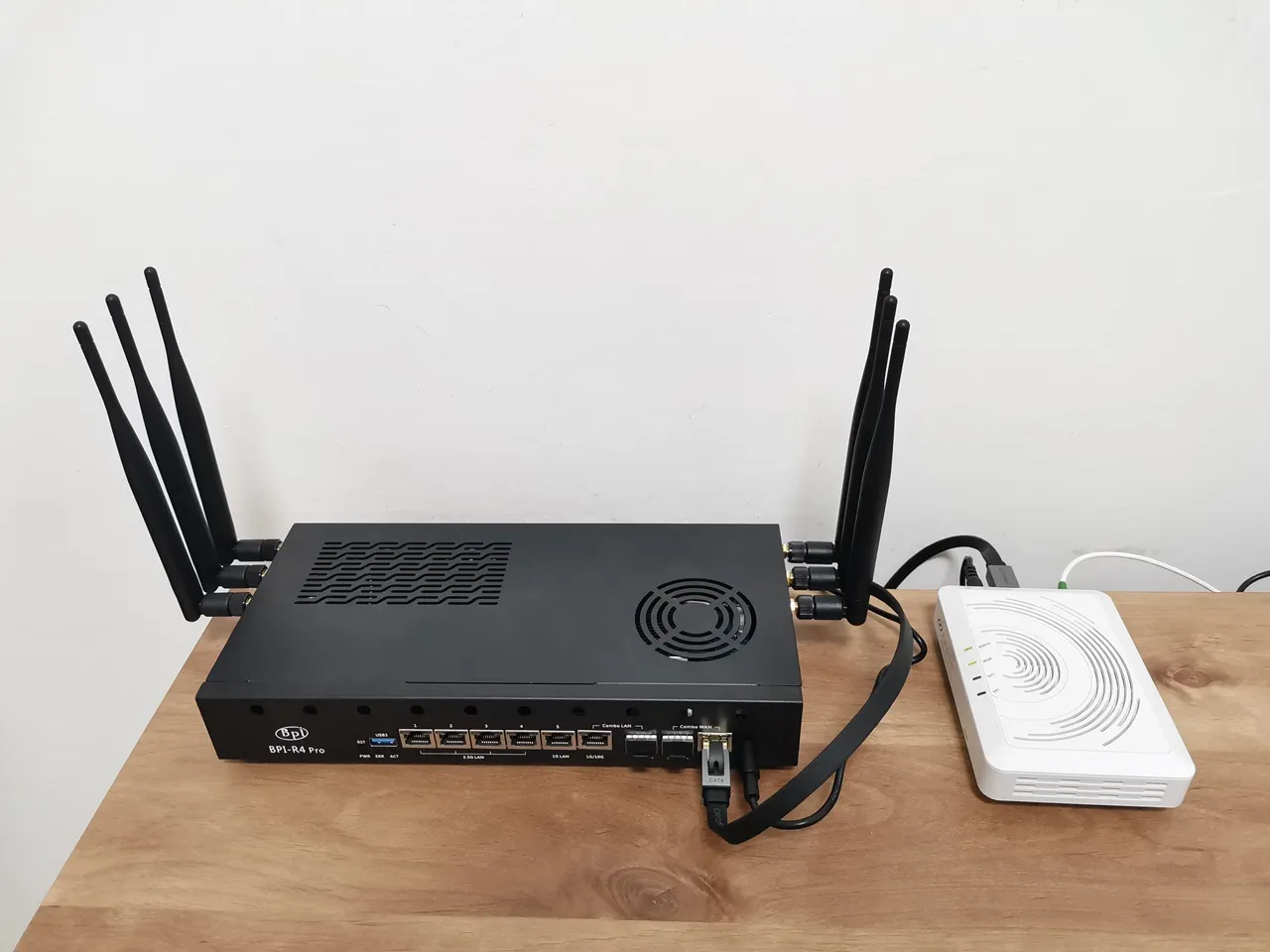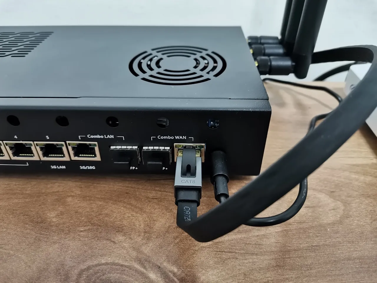 Well, it depends. If you have a 2.5Gb or 5Gb internet connection and your setup uses a standard ethernet network cable, your best bet is to go with one of the shared RJ45 combo ports. That said, we successfully connected our home Fiber ONTunit, which has a 1Gb LAN port with a Cat8 cable plugged into the R4 Pro’s WAN 2.5G/10G RJ45 port.