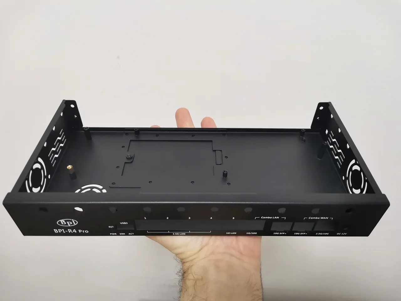 It’s made up of two sheet metal parts: the main cover, which protects the front panel and the top of the case, and the base, where the R4 Pro is secured with four Phillips-type screws. Compared to previous R4 case designs, this new version is a big upgrade and makes it much easier to access and open the case when needed. As mentioned, there are plenty of venting holes and slots, making this item a must-have if you’re planning to buy the R4 Pro board.