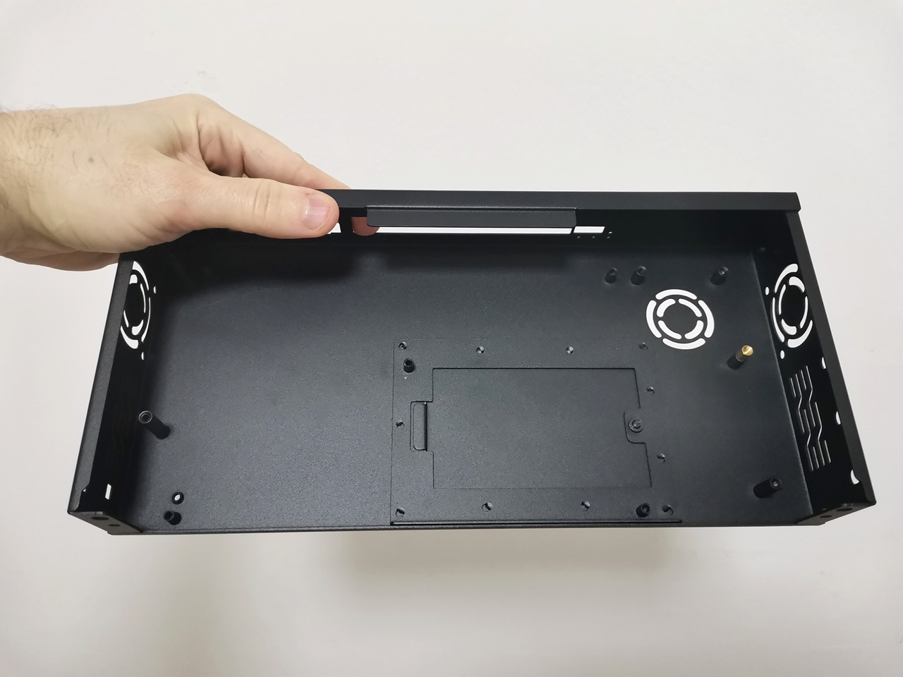 Overall, the case design is great, but there’s one small yet important drawback: it lacks holes for mounting a top 60 mm cooling fan. If you want to add one, you’ll need to drill four holes in the cover or use strong adhesive to attach the fan directly.