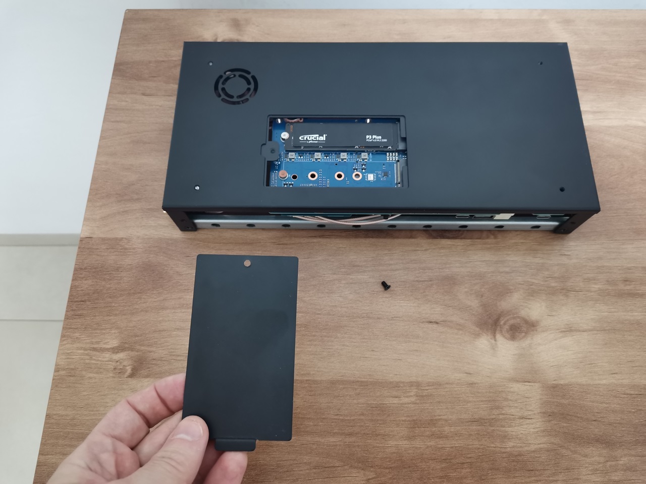 Accessing the NVMe slots from the bottom of the case.