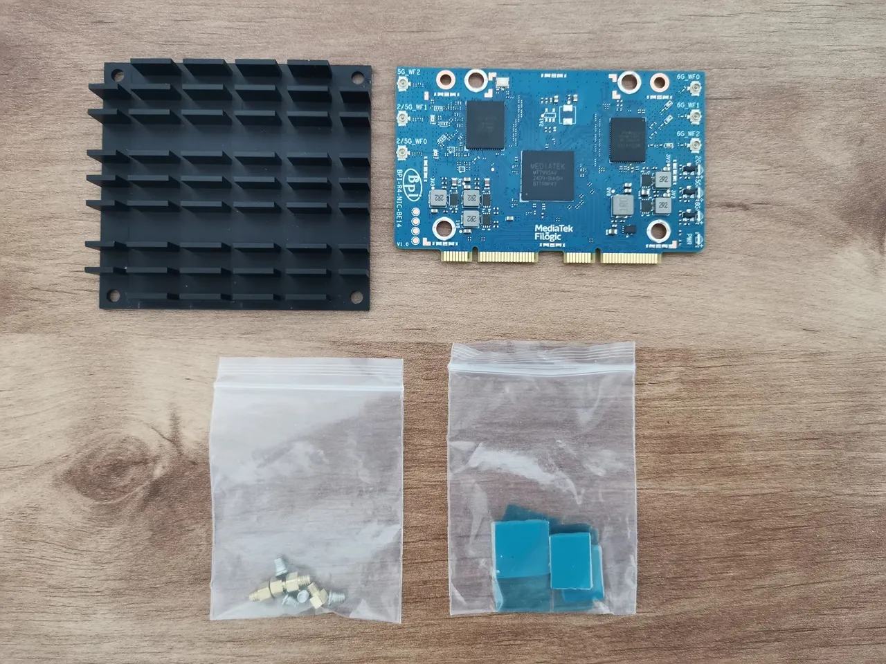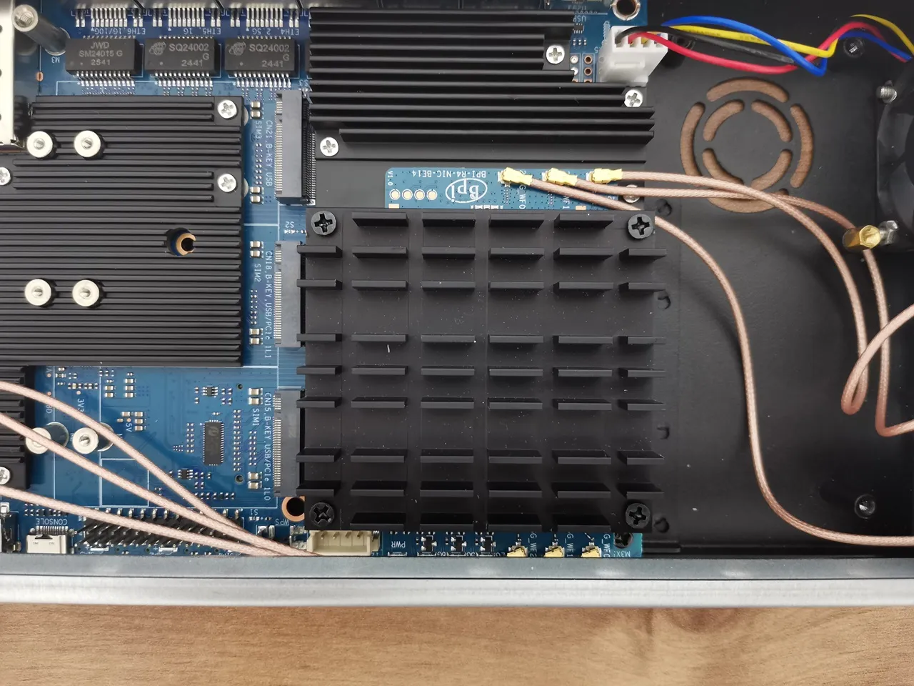 Cooling the NIC module properly is very crucial. From past experience installing it on the R4 board, it tends to get really hot. According to the Banana Pi documentation, there’s also a heatsink version with a built-in fan, which could be a great option for more intensive use. That said, everything fit together perfectly as expected.