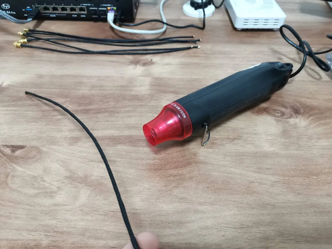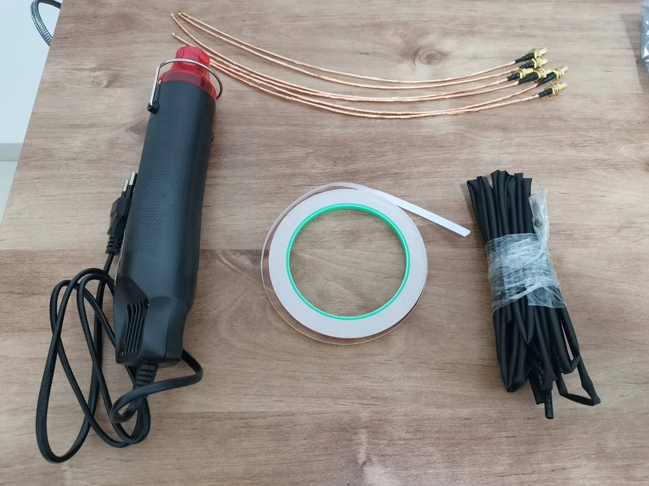 - Finally, we used the hot air gun to heat the heat shrink tubes.