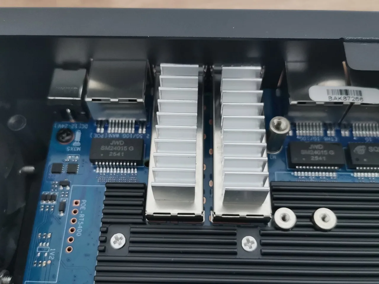 As a final touch, we also added a pair of heatsinks with max hight of 10mm, one for each SFP cage. This should help reduce accumulated heat and improve air contact, potentially enhancing the cooling of the SFP+ modules inserted into the cages.