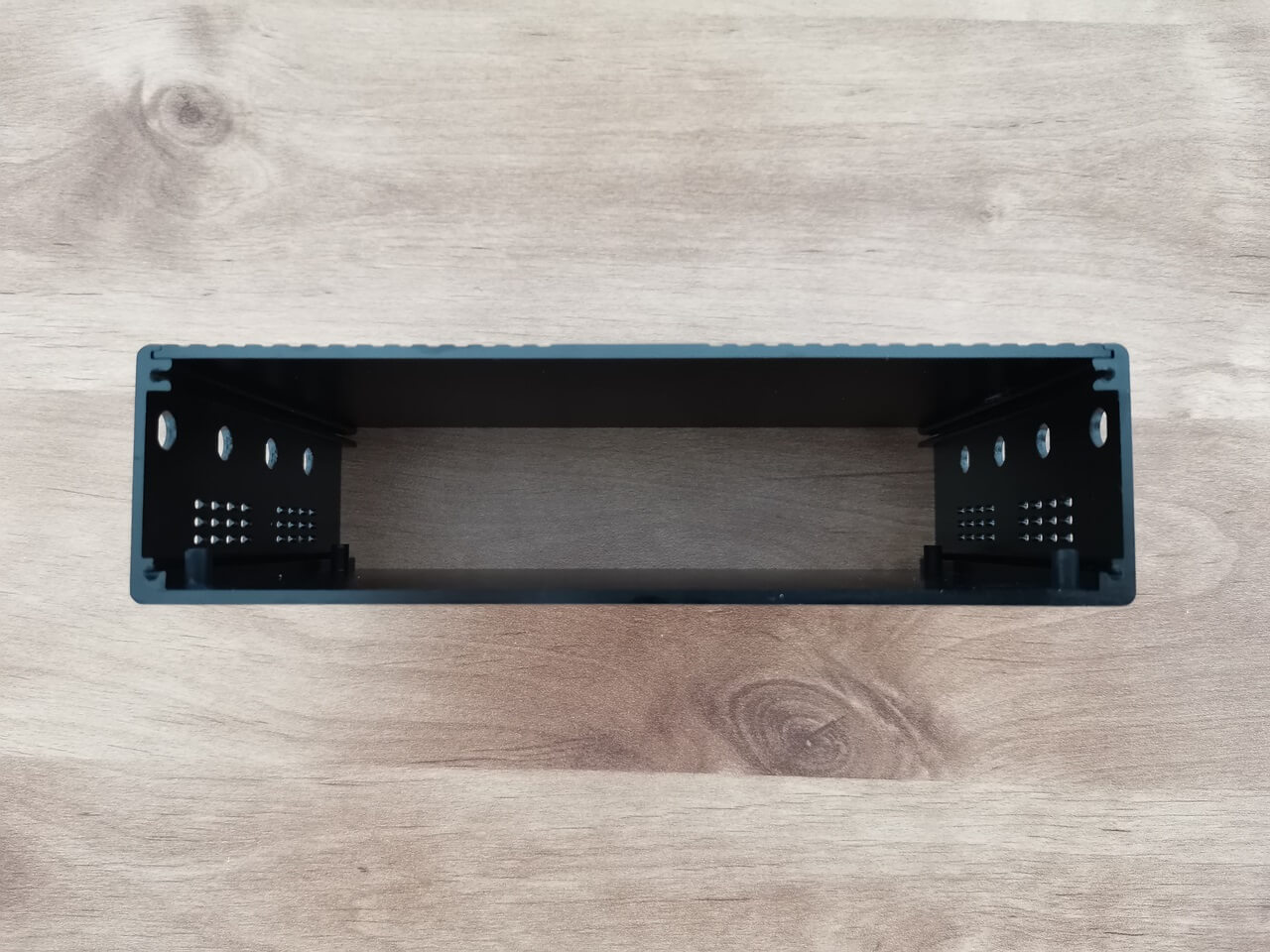 Banana Pi offers two distinct types of metal enclosures. Our review focuses on the CNC-manufactured version, which consists of four distinct components: a semi open profile, an upper cover, and side covers connected with screws, with all the necessary cuts for the LAN ports and interfaces. The alternative metal case is produced using the sheet metal bending process, making it likely to be more durable under heavy weight / pressure when applied to the case, what can be handy when used in industrial environments.