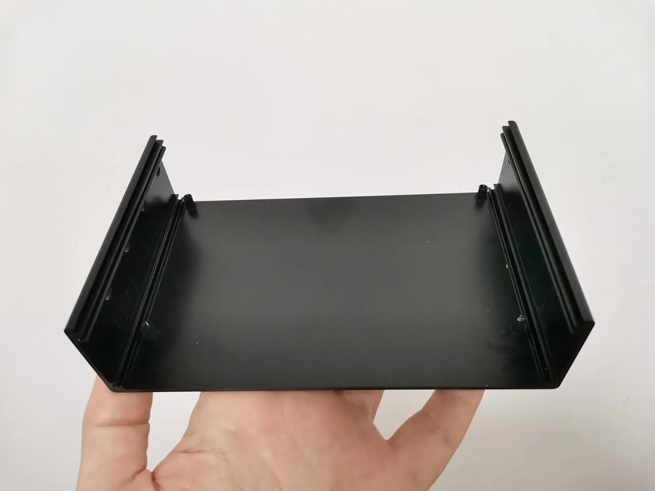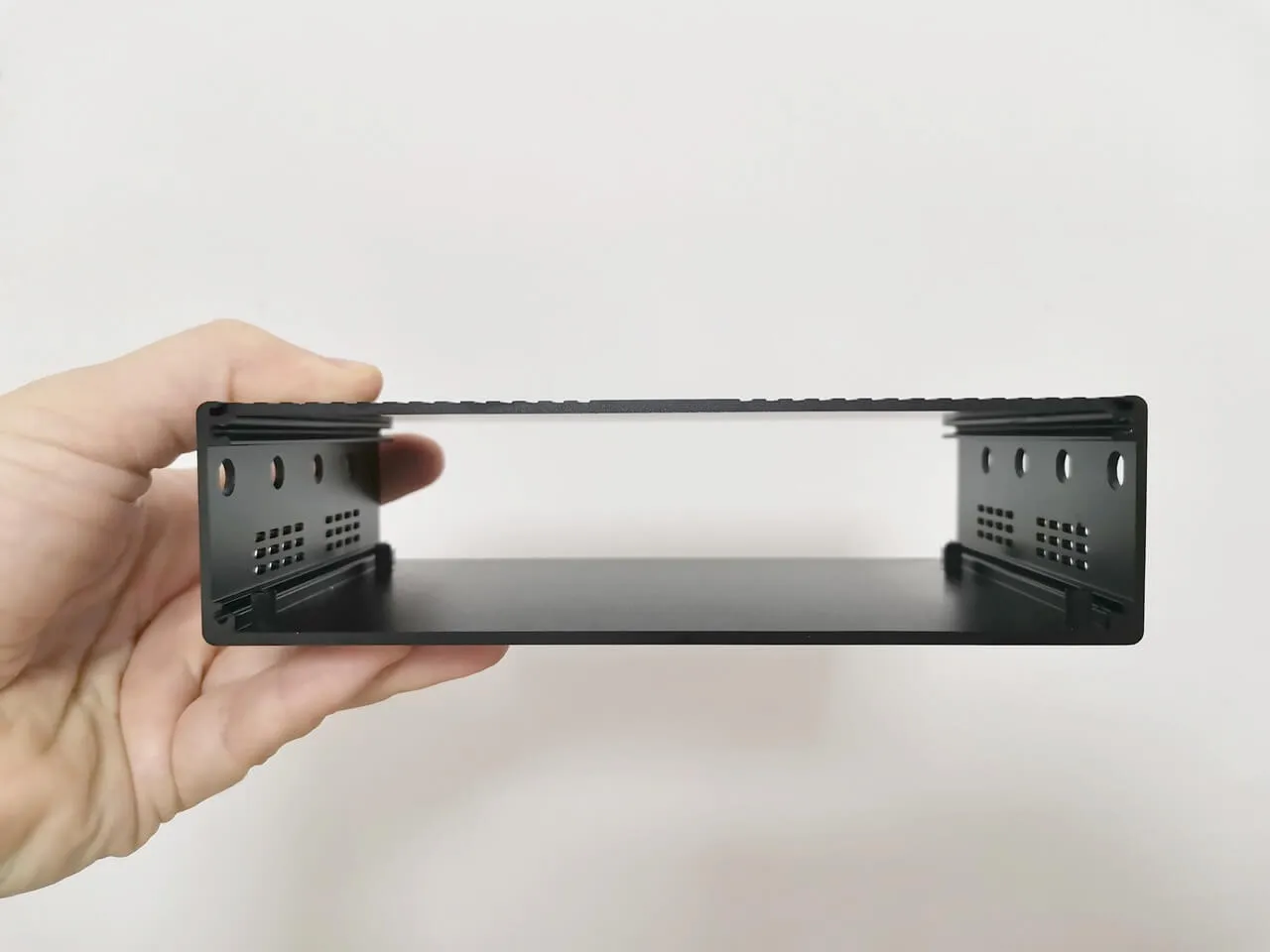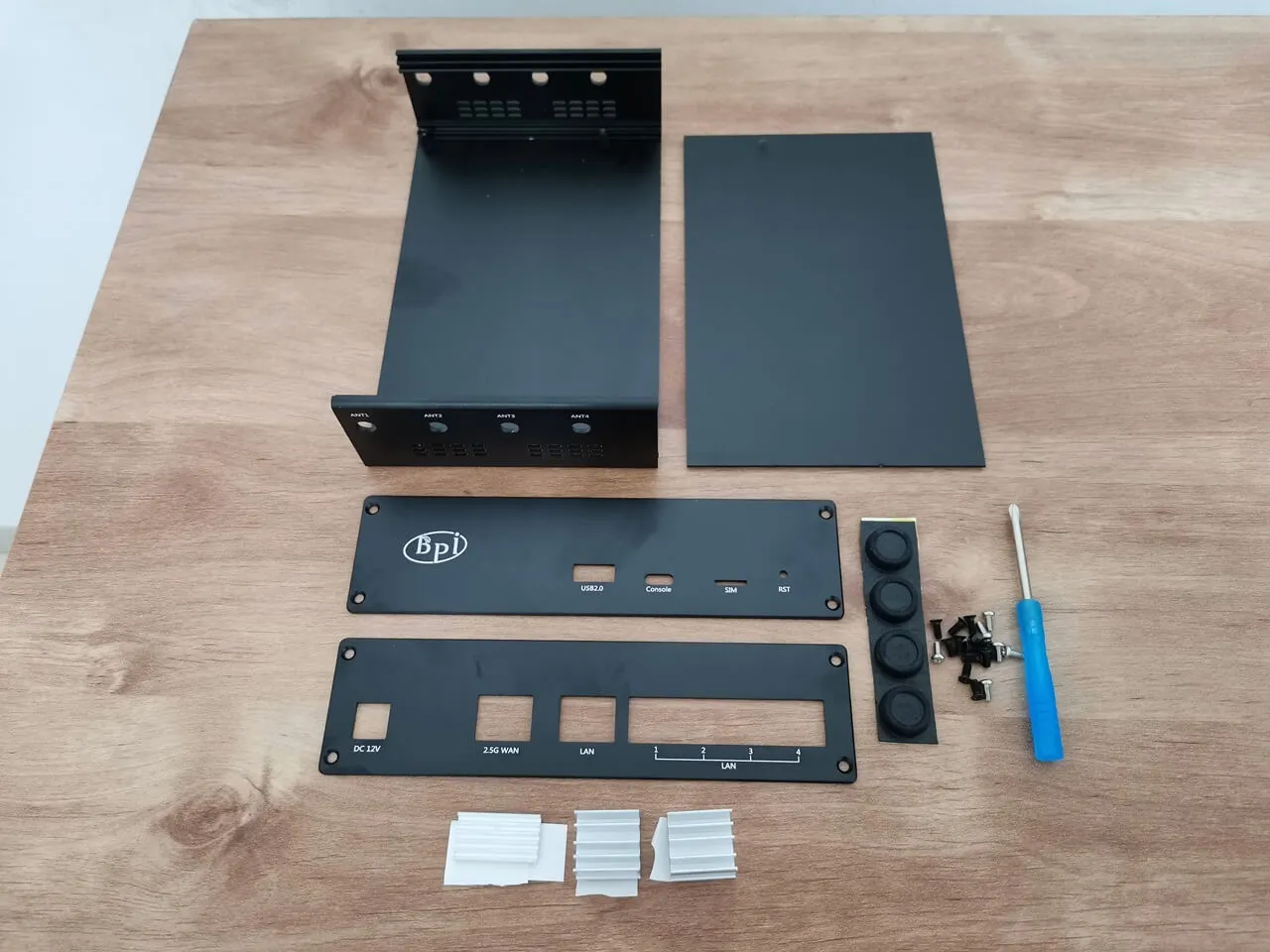 Banana Pi offers two distinct types of metal enclosures. Our review focuses on the CNC-manufactured version, which consists of four distinct components: a semi open profile, an upper cover, and side covers connected with screws, with all the necessary cuts for the LAN ports and interfaces. The alternative metal case is produced using the sheet metal bending process, making it likely to be more durable under heavy weight / pressure when applied to the case, what can be handy when used in industrial environments.