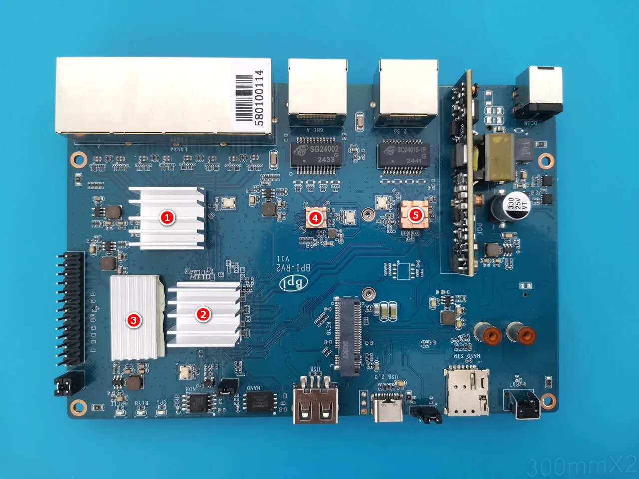 To ensure optimal cooling for critical board components such as the 512MB RAM, Sifower SF2H8898 SoC, and two ethernet control chips, we incorporated aluminum heatsinks, along with two extras in smaller dimensions. Below is a detailed list of these heatsinks and their dimensions: