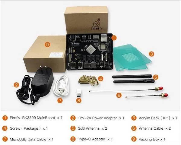 1. Firefly RK3399: 2GB DDR3, 16GB eMMC