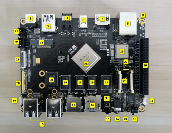 Featuring 4GB DDR3 RAM, M.2, and a USB 3.0 Type-C interface. It offers advanced features and processing power compared to the previous RK3288 SoC. The Processor features two server-class Cortex-A72 cores clocked to up to 1.9 GHz and four Cortex-A53 at up to 1.51 GHz with many developer-friendly interfaces (external interfaces).
