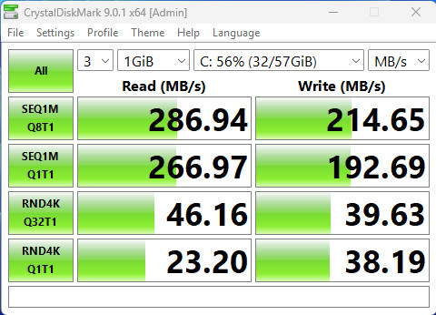 Test Type: | Read (MB/s) | Write (MB/s) |