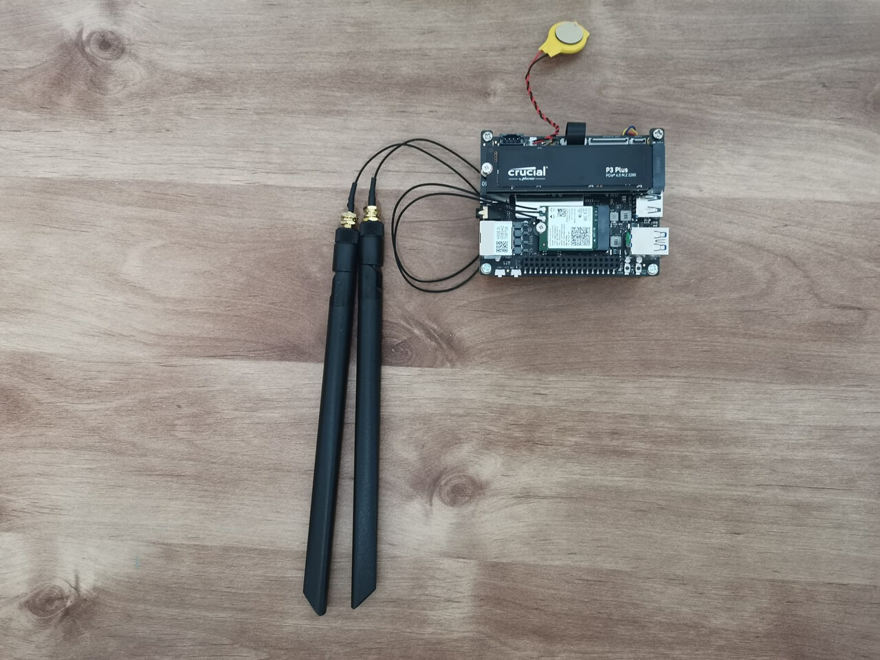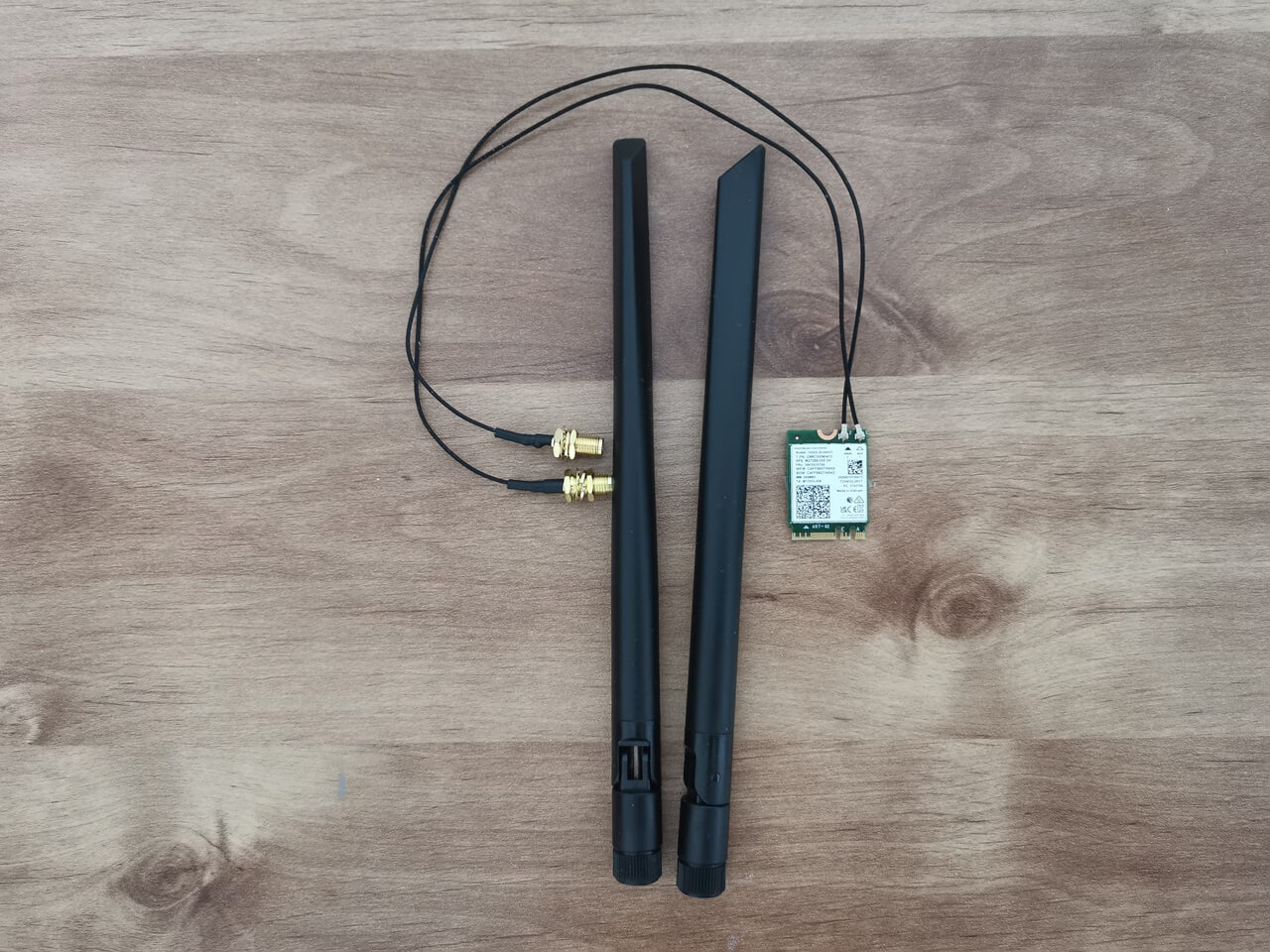 Installing the card was incredibly easy and straightforward. We simply plugged it in, and our Windows 11 Pro OS recognized it automatically. Mounting the two external Wi-Fi antennas can be done by either buying the aluminum heatsink case or by building a simple semi-open custom setup. For the custom setup, you’ll need hex nuts, screws, and two acrylic plates with holes to keep the antennas upright.