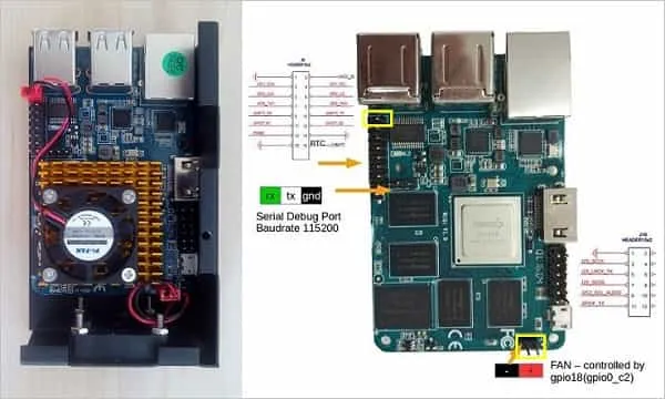 Another issue I had with this board, was with the 5V power GPIO FAN controller connector connected to the rear 30 mm fan. In some of the firmware, it failed to operate due to incorrect software configuration. it didn’t spin or started spinning and stopped every second. The fast solution for fixing this problem is to use pins No` 1-2 on the 14-pin GPIO header which keeps the fan spinning constantly.