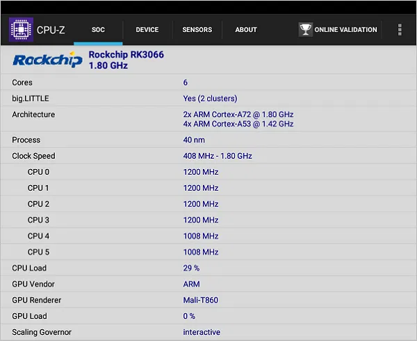 - CPU: big.LITTLE,Dual-Core Cortex-A72(up to 2.0GHz) + Quad-Core Cortex-A53(up to 1.5GHz)