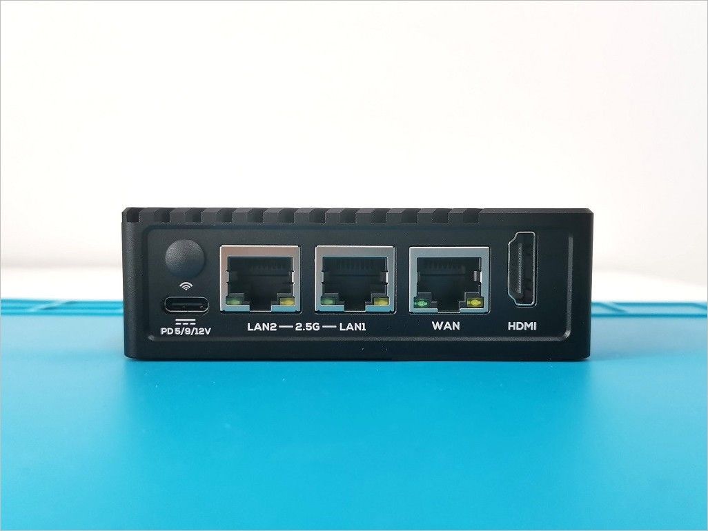 On the front side of the enclosure, four operation status LED lights, including for all three Ethernet ports. The NanoPi 5RS doesn’t have a power button, but there is a simple solution if you need one. You can buy a USB-C Power On/Off Switch Cable to solve this problem. You can find a suitable cable in the A+ Phone Accessory Store.