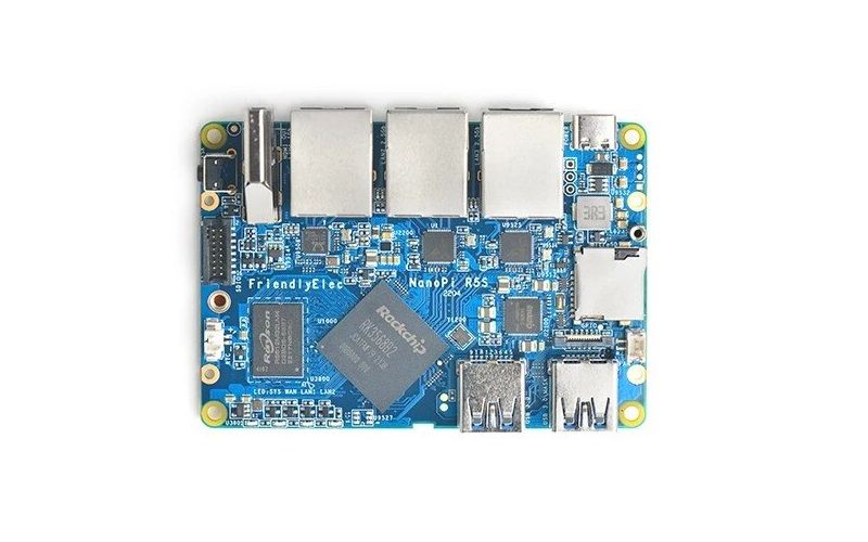 FriendlyELEC NanoPi R5S single-board computer (SBC) measures 90 x 62mm, slightly larger than the Raspberry Pi 4 Model B, which measures 3.6 x 2.4 Inches (92x60mm).