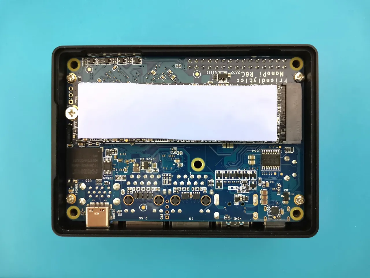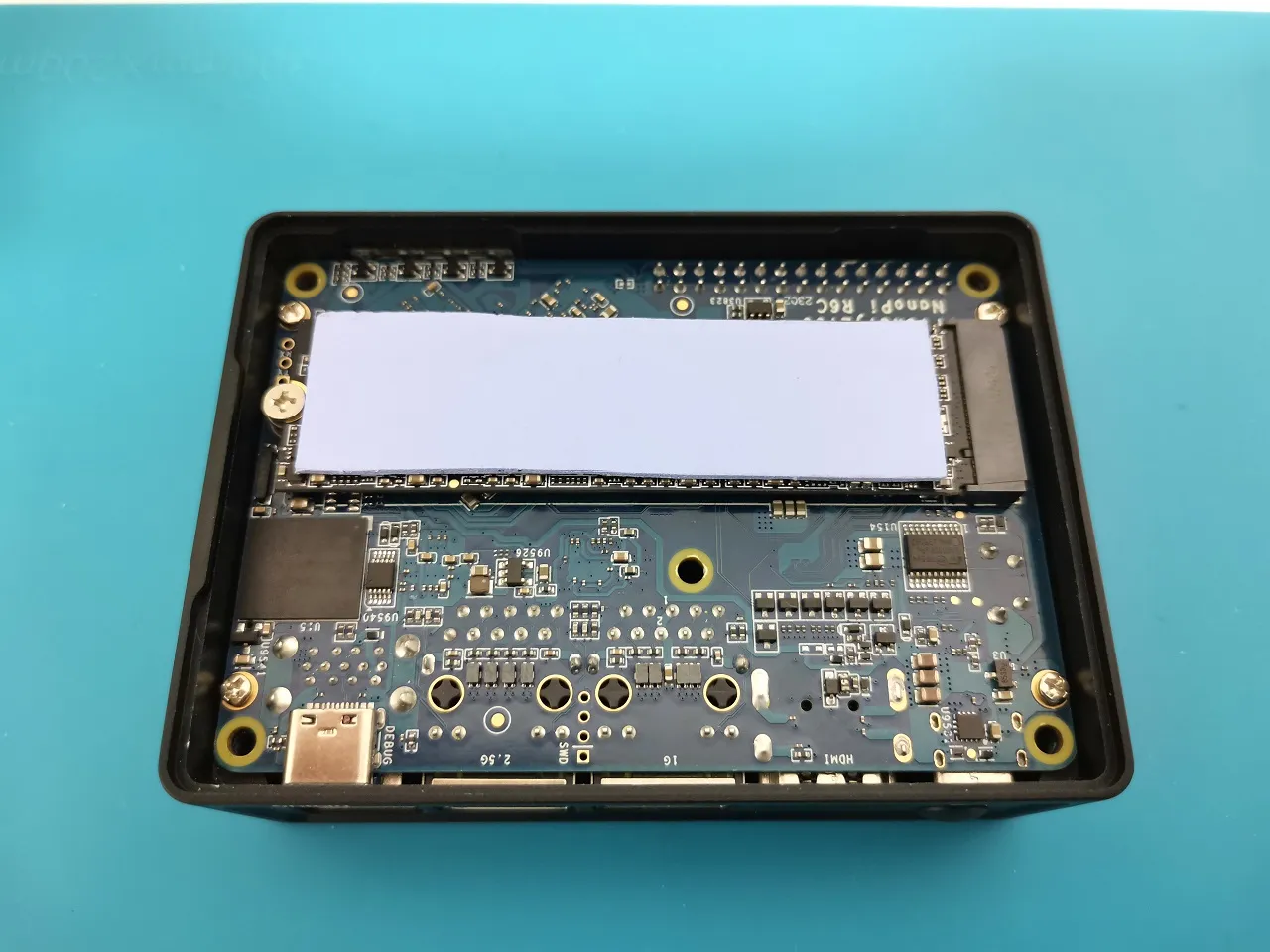 This is crucial to ensure the NVMe gets the proper cooling. But before installing there are things you should know. First, you can’t use an NVMe heatsink because theרe is not enough space. FriendlyElec team meticulously designed the cover to have contact with the card, which conducts the heat via the case cover. You can buy or cut a thermal silicon pad to 20x70x1 mm. If the NVMe already comes with some sort of thermal sticker, then you will most likely need to peel it off.