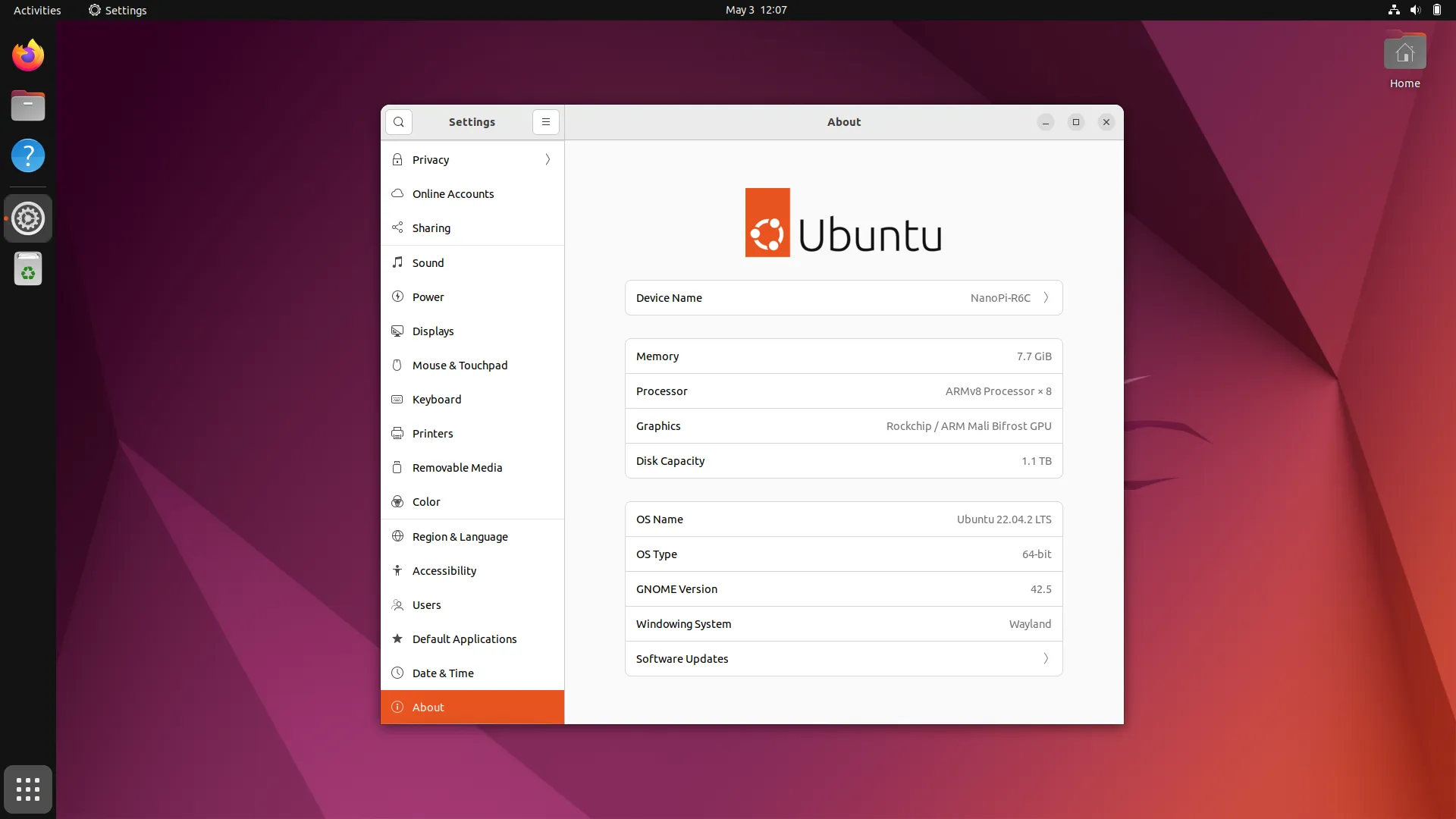 In the software department, FriendlyElec company team offers Android 12.0 and Android TV images including Ubuntu and Debian installation images for flashing both eMMC and SD Cards. Our most satisfactory experience was running Ubuntu Jammy 22.04.2 LTS in the GNOME desktop environment. This distribution looks modern, clean with an excellent interface that is extremely snappy and user responsive.