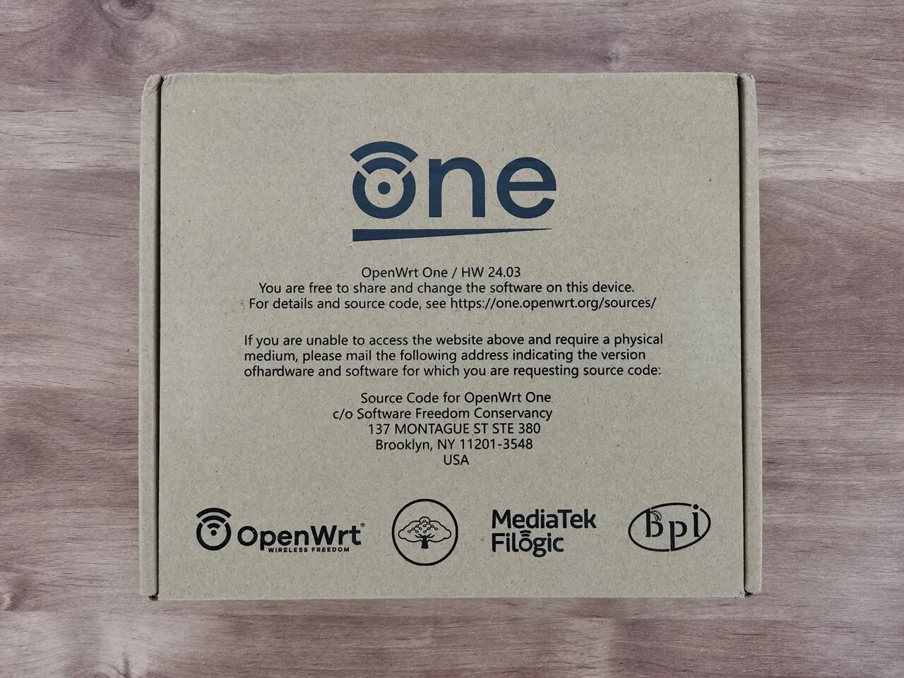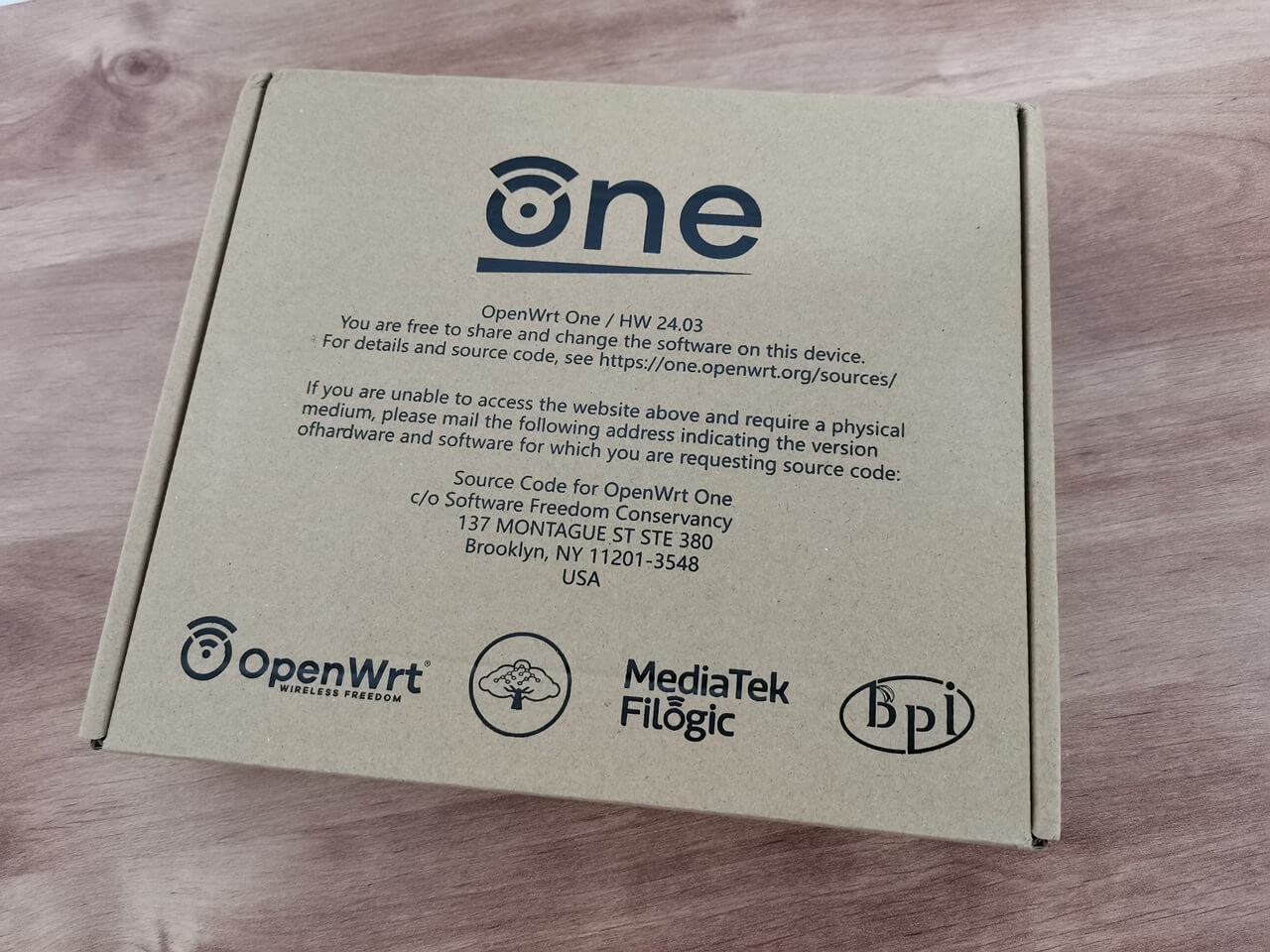 The OpenWrt router arrived securely packaged in a standard cardboard box, featuring the logos of OpenWrt and Banana Pi.