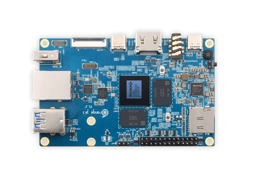 Introducing the Orange Pi 5, the latest single-board computer equipped with the mighty RK3588S CPU developed by Rockchip. It is an octa-core processor with four neural processing units (NPUs) capable of up to TOPS of AI performance, four 1.8 GHz Cortex-A55 cores, four 2.4 GHz ARM Cortex-A76 CPU cores, and Mali-G610 MP4 GPU.