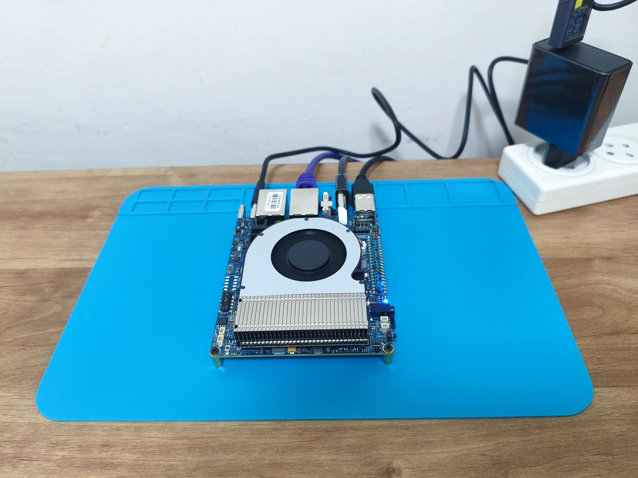 Orange Pi included a 100W power supply adapter in our kit. On the bright side, the board’s power consumption was minimal, averaging about 16.5W, which excellent. During heavy high intensity workloads, the wattage can climb to around 30W or more.