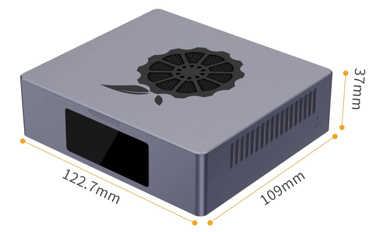 According to the Orange Pi website, the new metal case doesn’t include passive cooling option and is essentially hollow, so the board, along with the active heatsink are assembled together inside the case. Based on the CAD drawing images, the company has incorporated side venting slots and holes, including a large vent, to release excess heat from the case.