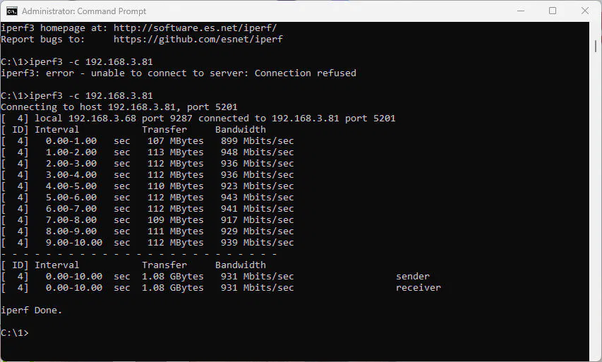 Based on the findings derived from thorough testing and analysis, it can be concluded that the LAN port is more than capable of delivering an average bidirectional throughput transfer speed of up to 931 Mbits/sec.