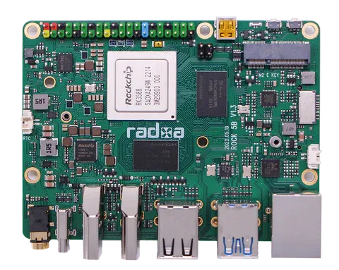 Rock 5 Model B is a high-performance single-board computer designed for a variety of applications. It boasts an impressive eight core ARM Quad A76 + Quad A55 processor, with 4GB LPDDR3 RAM up to 16GB , and support for up to 128GB of Micro SD storage including PCle 3.0 x4 interface for NVMe SSD. With its built-in Gigabit Ethernet, dual-band wireless connectivity supporting Wi-Fi 6, and Bluetooth 5.2 support, the Rock 5 Model B is an ideal choice for networking and IoT projects. It also features a wide range of ports, including USB 3.1, HDMI, and a 3.5mm audio jack. The device is compatible with a wide range of peripherals because of this. This board is a great choice whatever you’re building: media centers, gaming systems, or home automation systems.
