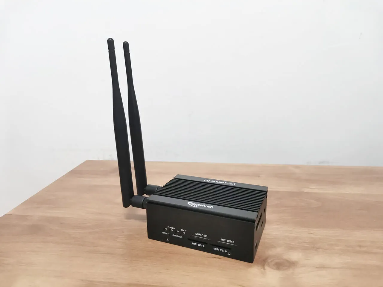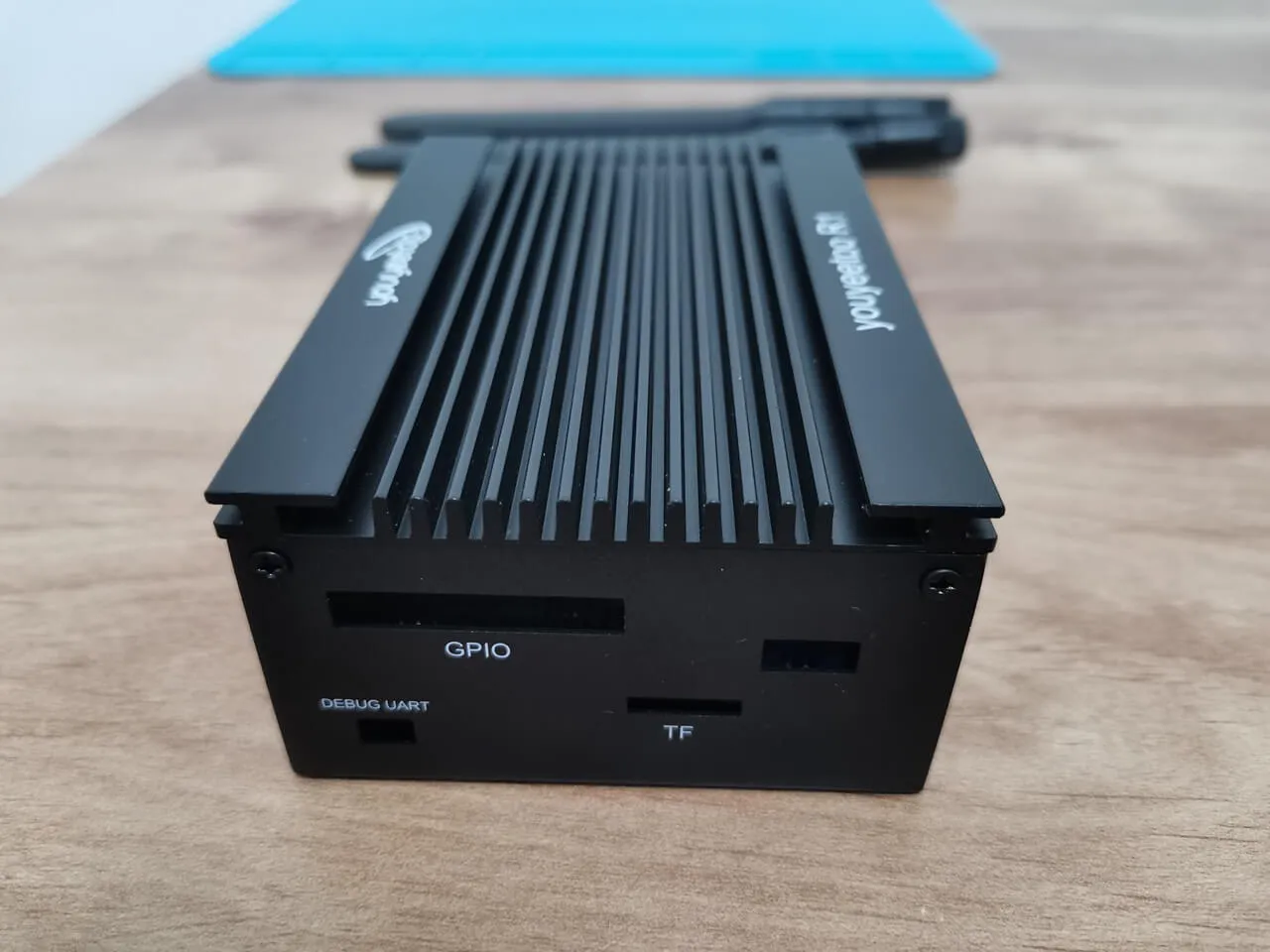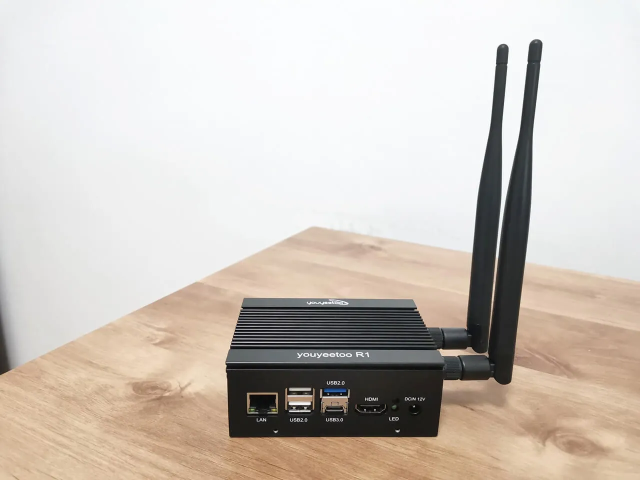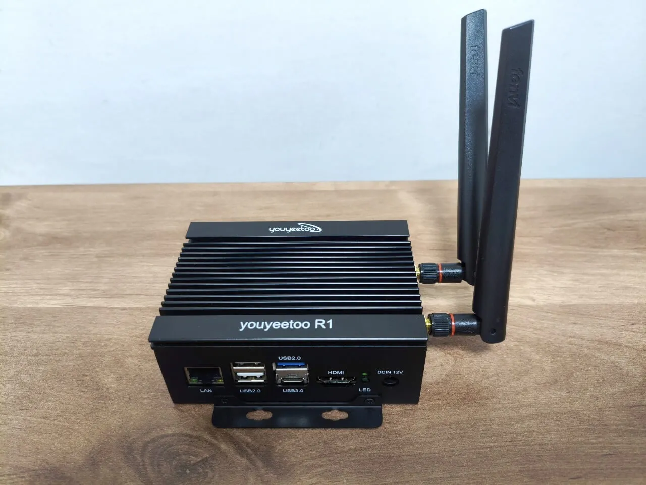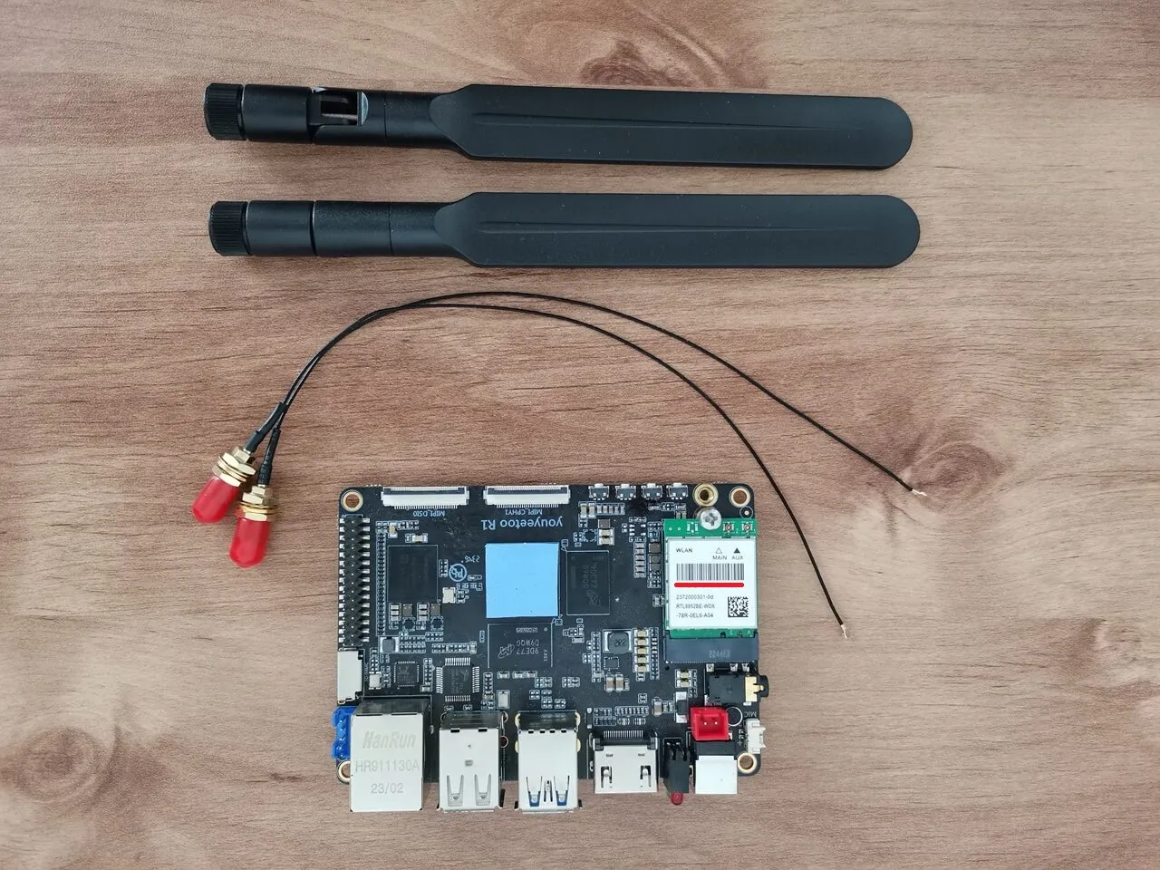 The final outcome, illustrated in the photos below, exceeds all expectations, showcasing a well-crafted metal enclosure. For those interested, the Wi-Fi card and antennas can be purchased separately on the YouYouToo website. Furthermore, the images reveal that we have incorporated additional heat sinks onto the eMMC flash chip, USB controller, and Ethernet controller to improve cooling performance.