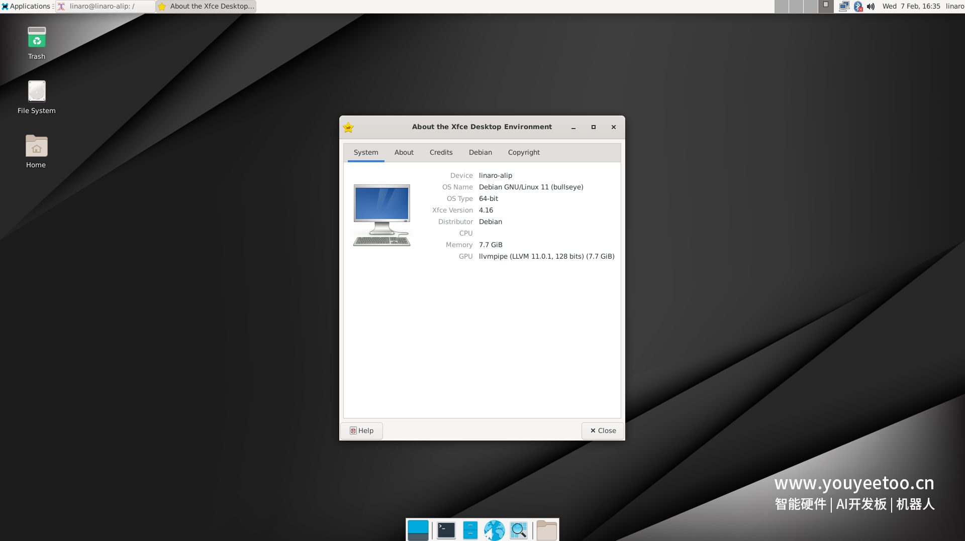 The variant we received for this review is equipped with an impressive 8GB of RAM and 64GB of eMMC storage, priced at a reasonable $119.00. However, for most users, the 4GB RAM and 32GB storage option should suffice. Now, let’s delve into the operation process. Our X1 board came pre-installed with Debian Linux v11.00, seamlessly running in the sleek XFCE desktop environment.
