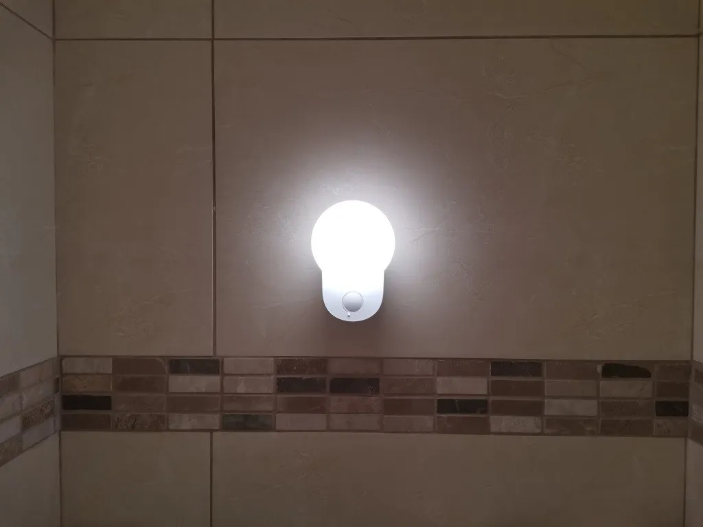 The night lamp comes with a built-in magnet so it can be easily mounted on almost any type of straight surface. To mount the lamp you simply attached the base part with the provided double-side type sticker that also has a metal part built inside that attaches itself to the magnet inside the lamp. This effective arrangement facilitates the removal of the lamp when an additional charge is required.