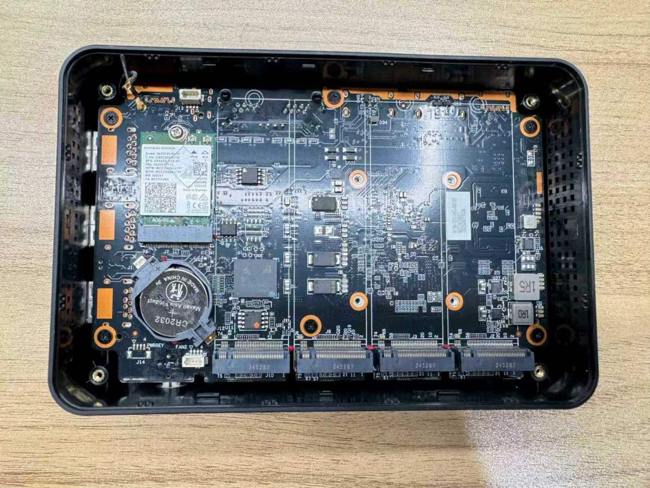 Check out the photo below! You’ll see that this device has four NVMe 2280 slots for storage. Plus, there’s a place for a Wi-Fi/Bluetooth card if you want to add that, too. And since each NVMe can support up to 4TB, so you can potentially expand your storage up to 16TB!