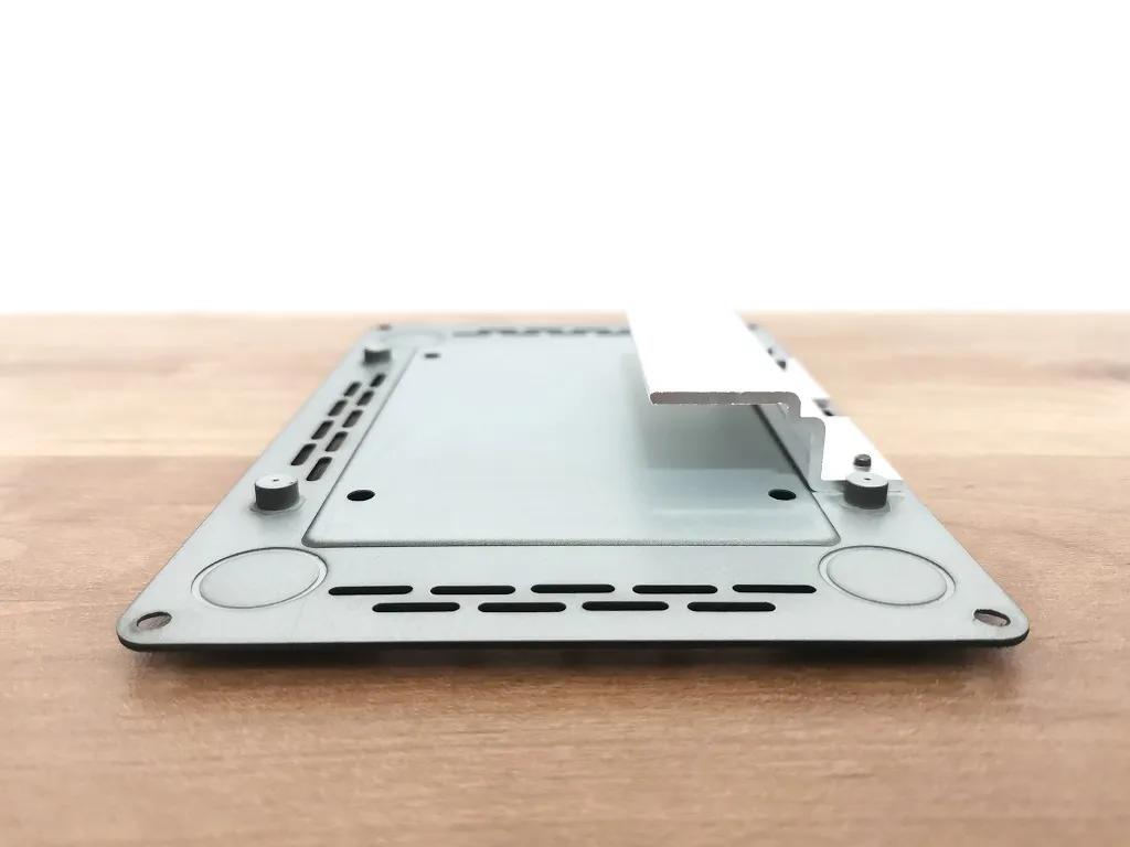 At the bottom of the unit, you will discover a protective cover designed as a cooling plate/heat sink. Its purpose is to greatly enhance heat convection between the M.2 SSD and the 2.5 Inch SSD that can be attached to the cover. As a result, heat will be efficiently dispersed throughout the case cover, ensuring optimal cooling performance.