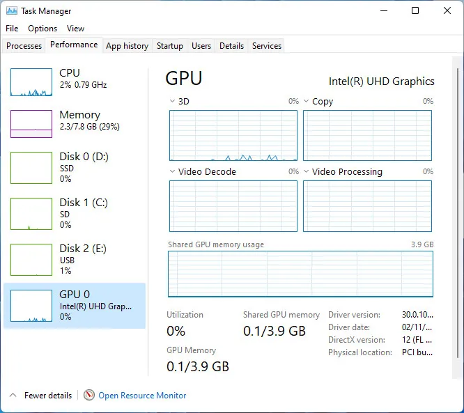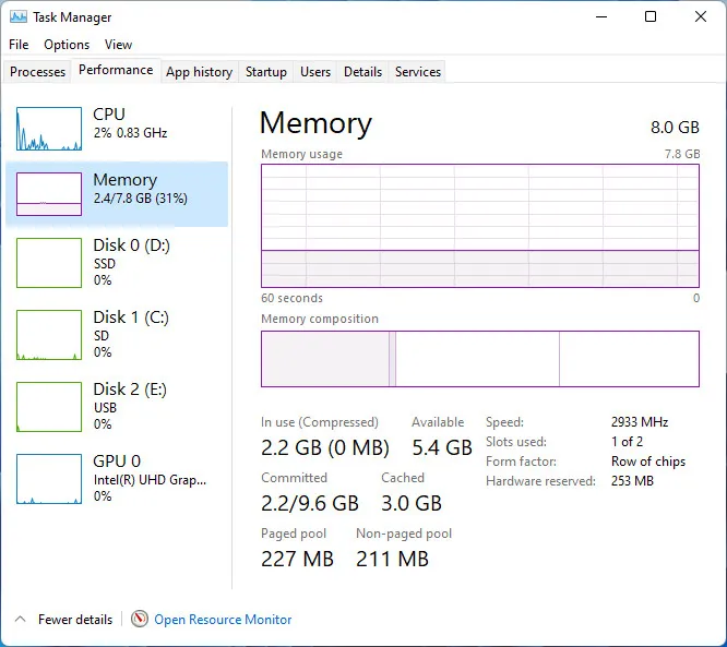 The 8GB LPDDR4 RAM configuration worked well for us. Based on Windows 11 Task Manager information, with a fresh booted clean system without any extra apps running in the background, only %30 of 8GB of RAM was used. It’s also important to mention that the memory components are soldered to the PCB, so in terms of future upgrades, you don’t have the option to add additional memory modules.