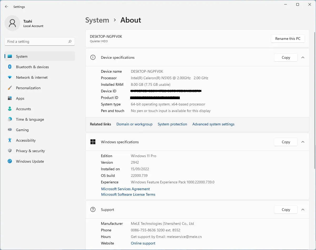 The MeLE Quieter HD3Q comes with different eMMC storage configurations in the default configuration, but you are not limited to eMMC storage space. As mentioned previously, Windows 11 Pro edition comes pre-installed on the device. From 256GB eMMC flash storage, you are left with ~191GB of free space.