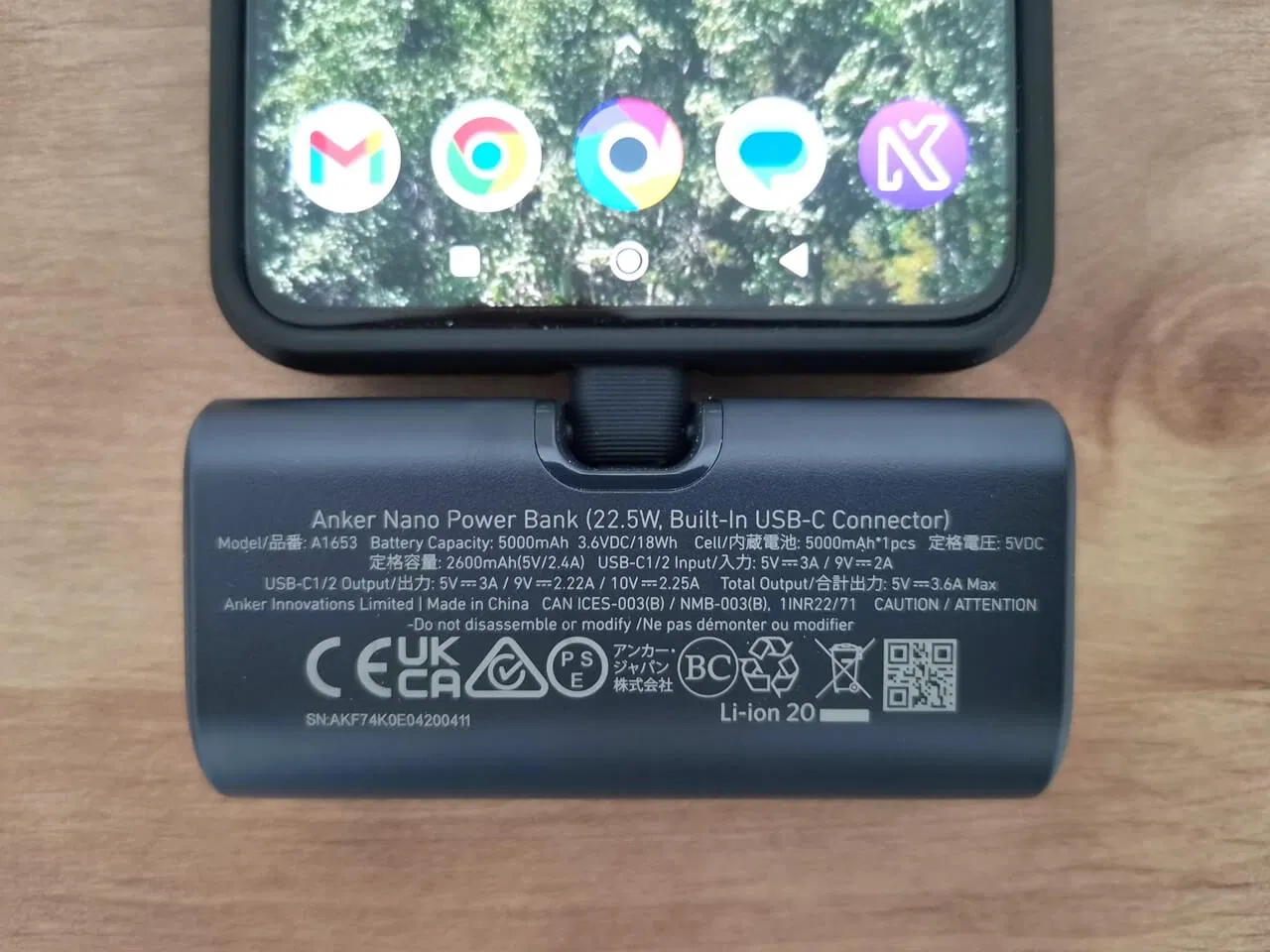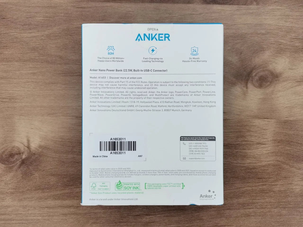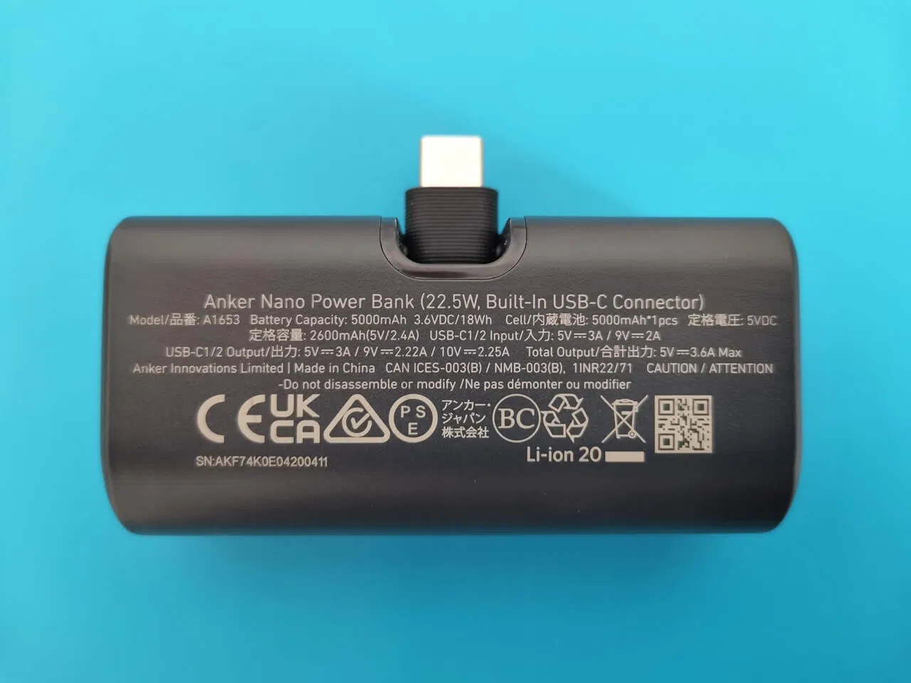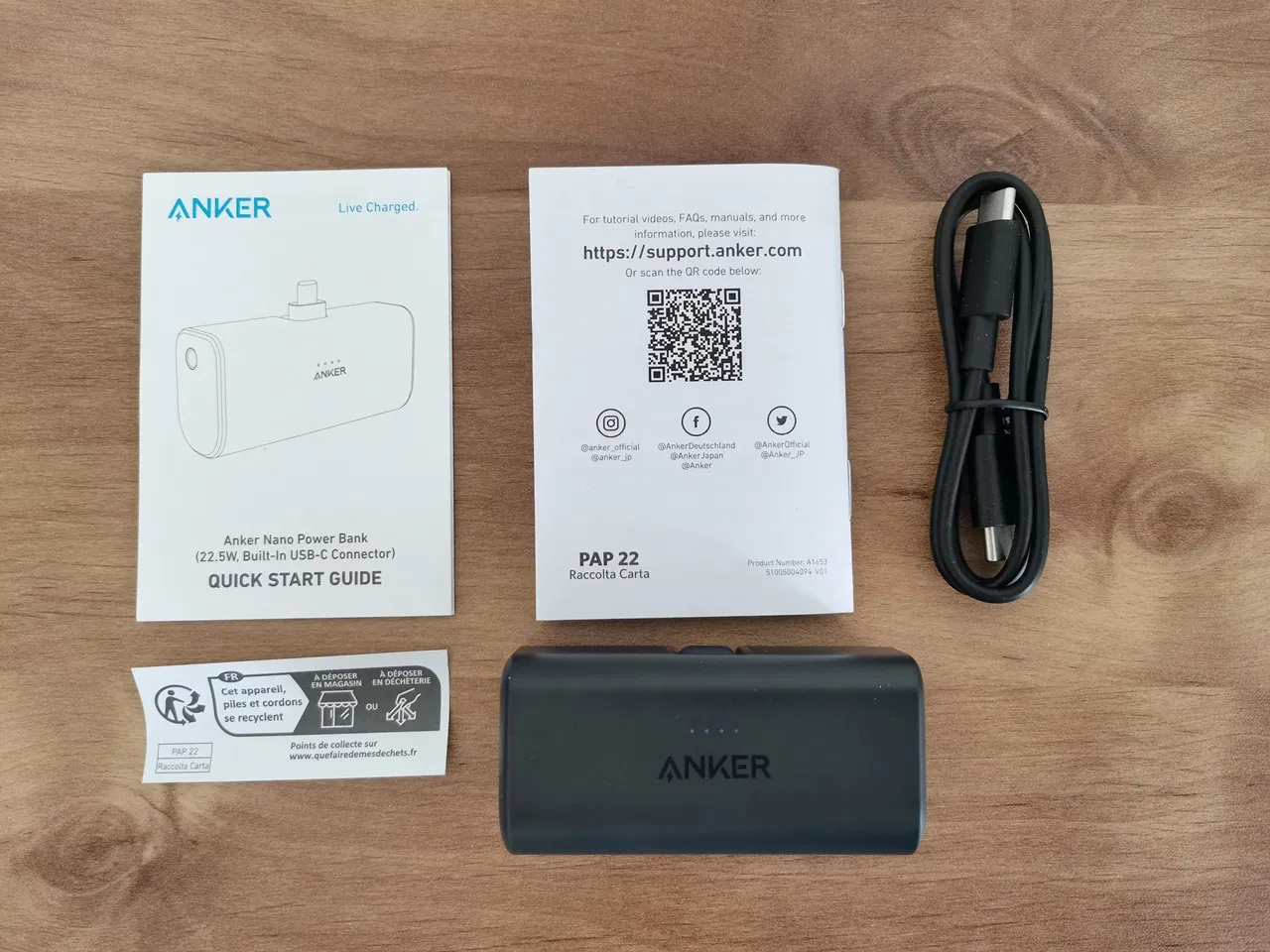 | What You Get! | Anker Nano Power Bank (22.5W, Built-In USB-C Connector), 2 ft / 0.6 m USB-C to USB-C cable, welcome guide, user manual, 24-month worry-free warranty, and our friendly customer service. |