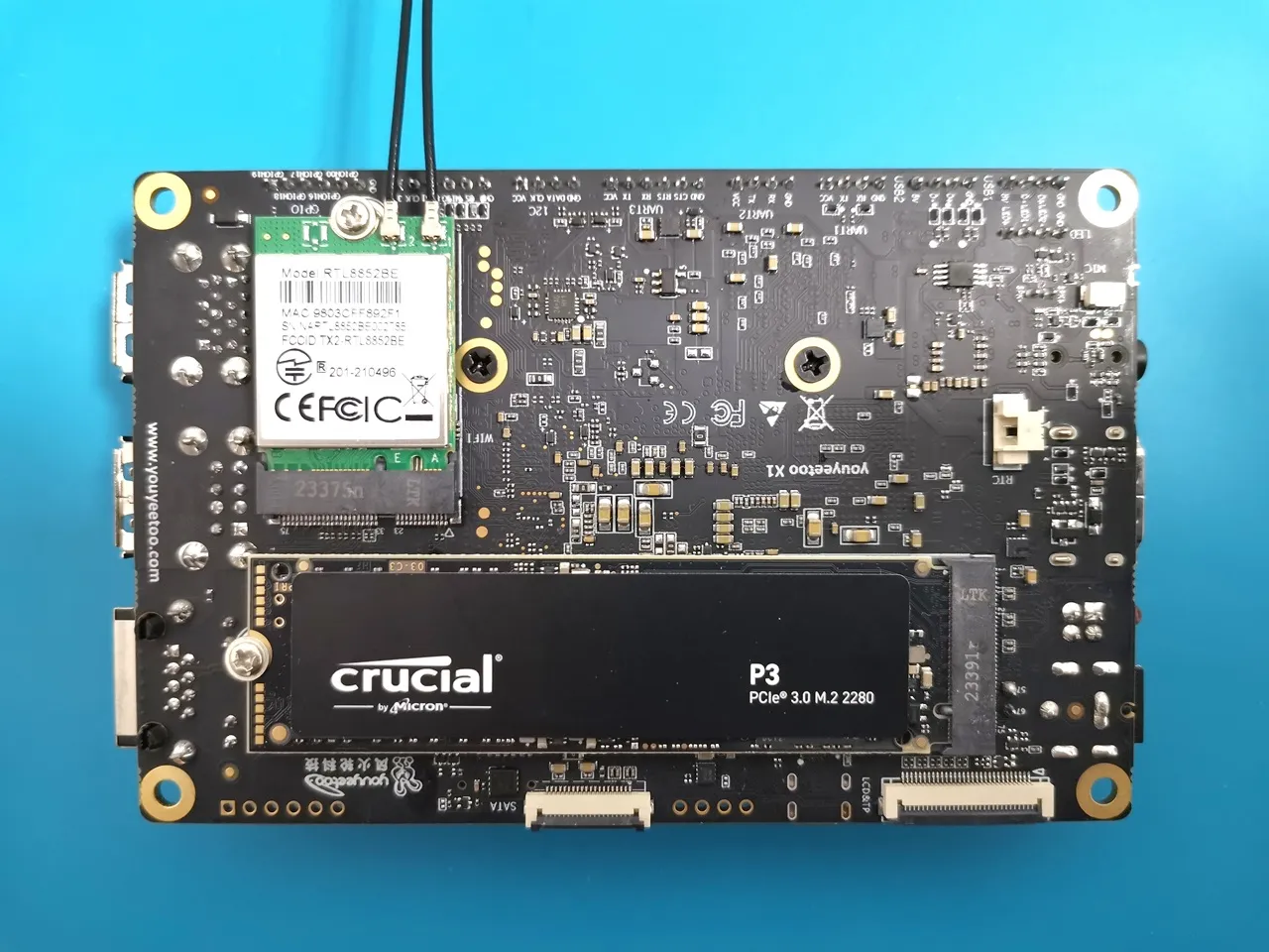 The Youyeetoo team offers a combo Wi-Fi 6 / BT module, equipped with the powerful Realtek RTL88.52BE chip. Priced at just $15, this module is compatible with both ARM and X86 boards, ensuring seamless integration. What sets it apart is the outstanding Linux support provided by the Mediatek-based modules, giving you an undeniable advantage. To top it off, the X1 also features a reliable gigabyte Ethernet port that delivers fast throughput speeds, and we managed to reach our maximum bandwidth provided by our ISP.