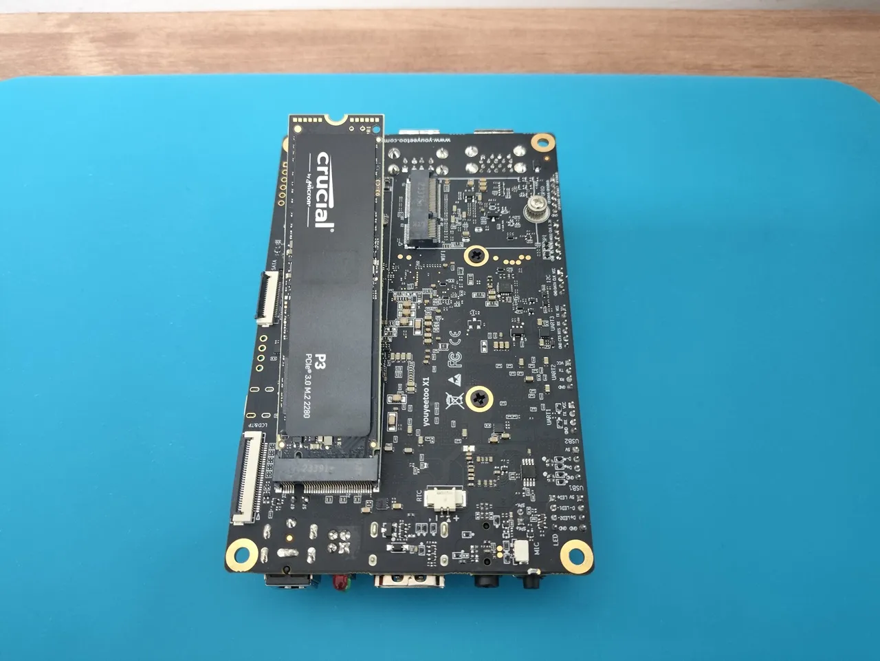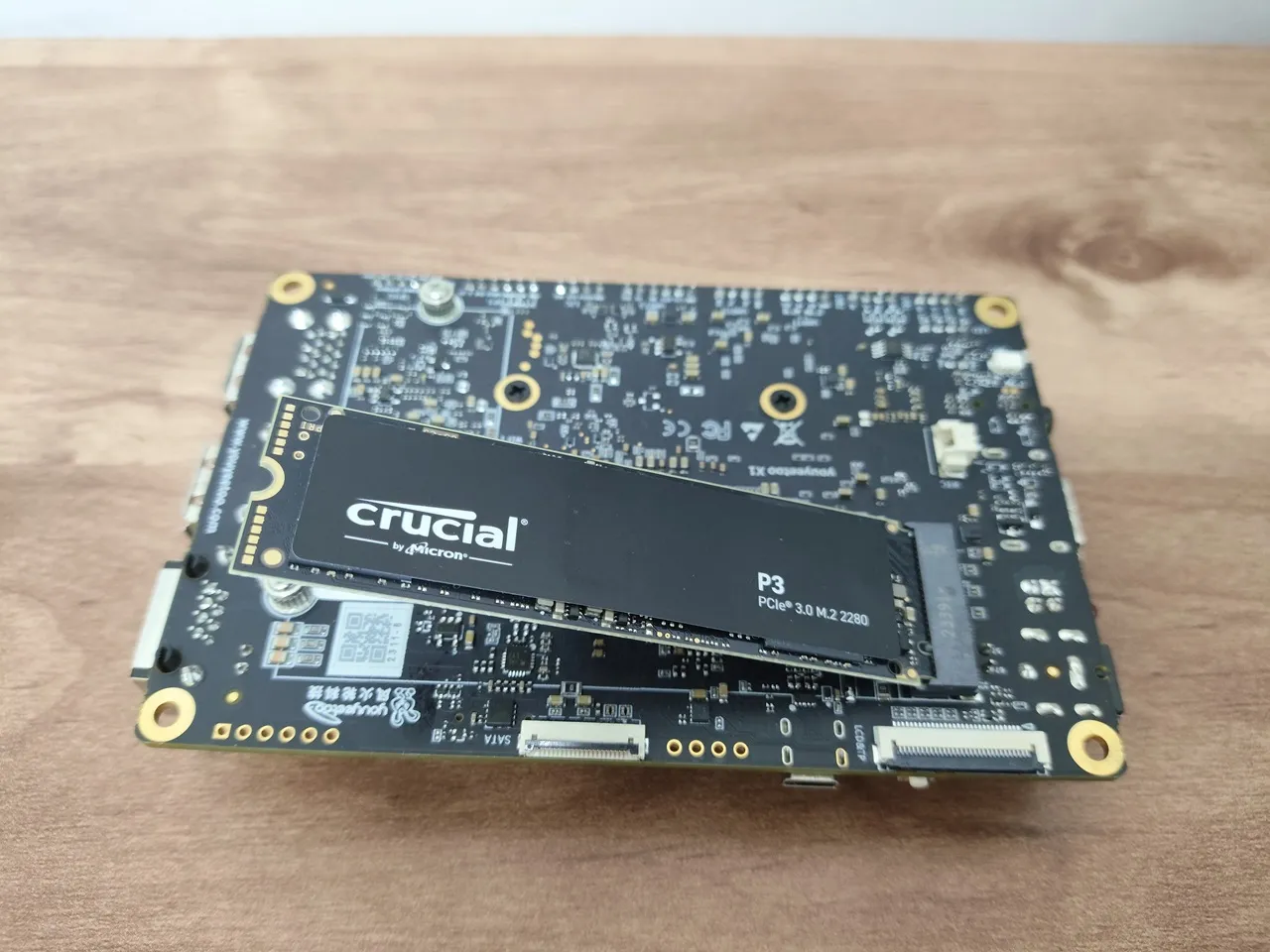 The installation of the M.2 2280 NVMe in the X1 M.2 M-Key socket was a breeze. In our tests, we opted for the reliable Crucial brand’s PCIe 3.0 P1 model, which boasts top-notch chips manufactured by Micron.