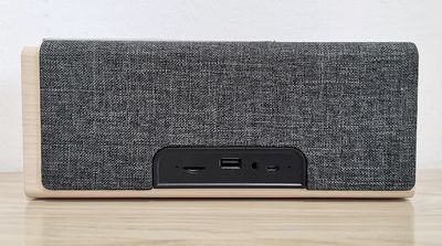 In the realm of materials and construction, this speaker boasts a body primarily crafted from wood, exuding a natural and elegant appeal. Complementing this exquisite design are two sleek plastic panels that house the speaker’s front control panel and interfaces. The speaker grill, enveloping a significant portion of the speaker body, is adorned with a tactile syntactic fabric, adding a touch of sophistication. Equipped with Bluetooth 5.0 technology, this remarkable speaker allows for seamless wireless connectivity.