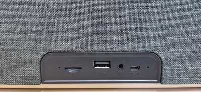 The speaker exceeded our expectations in both design and construction quality with great craftsmanship, that you don’t usually find in $41 speaker. Looking at the material used, its main body is mostly from wood material with plastic for the front operation panel including the interface panel located on the rear side of the speaker.