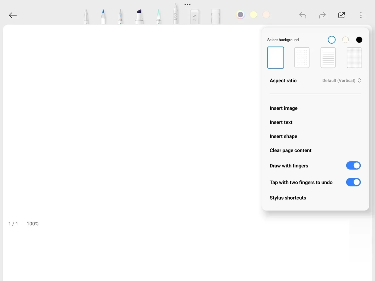 Canvas provides various capabilities for painting, drawing, and writing. The app comes with a nice variety of pencil and marker widths, as well as different drawing styles to choose from. You also have a wide selection of colors available in the palette. You can customize the page ratio you are working on, change the tip size, stroke width, and sensitivity. Additionally, you can insert various basic shapes in your notes and easily export your work to PDF or an image file.