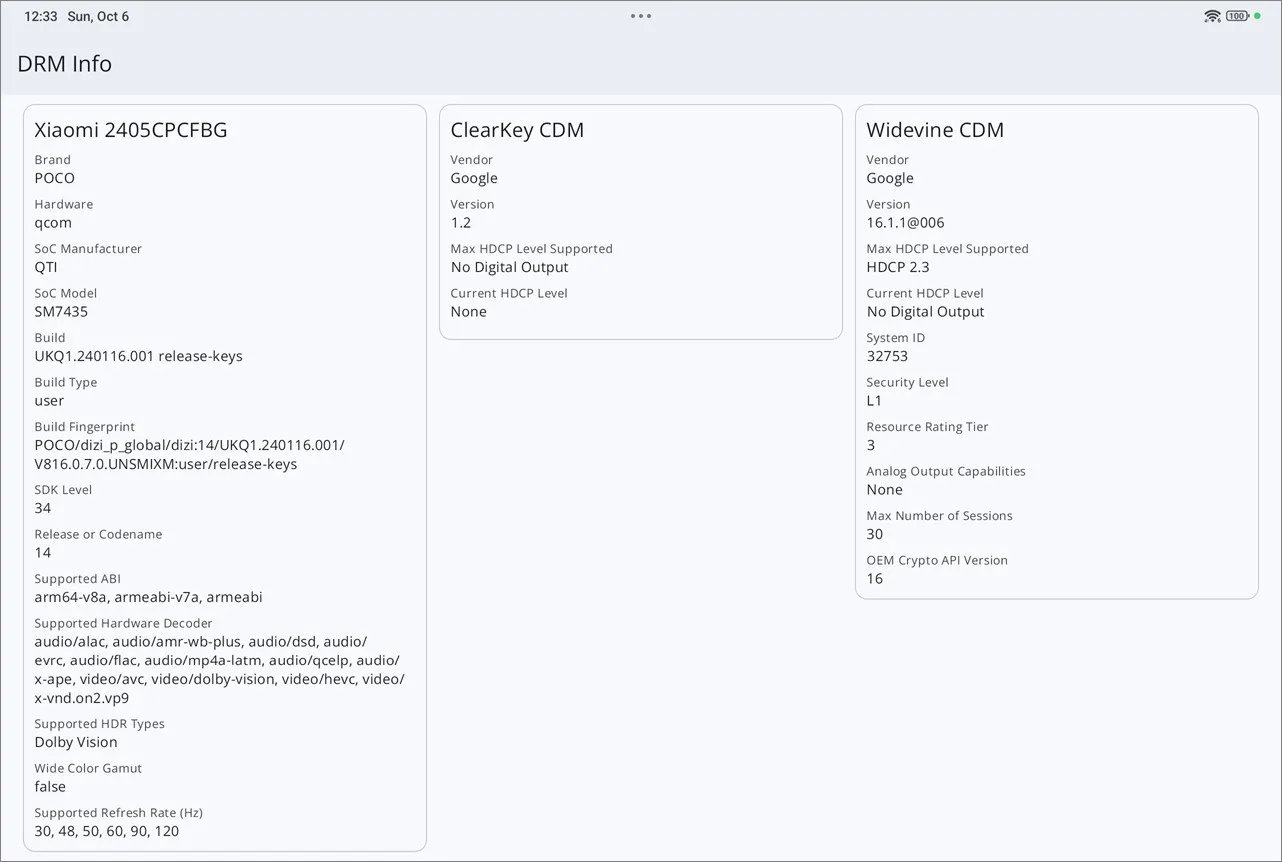Xiaomi Poco Pad | DRM Info